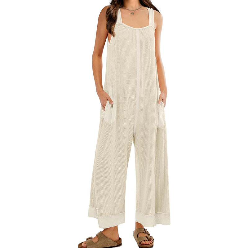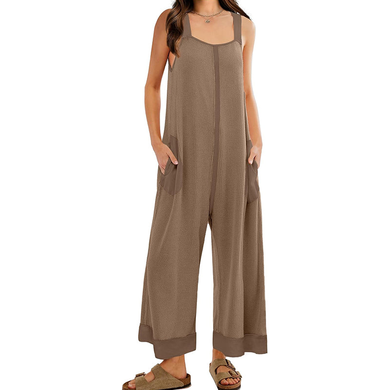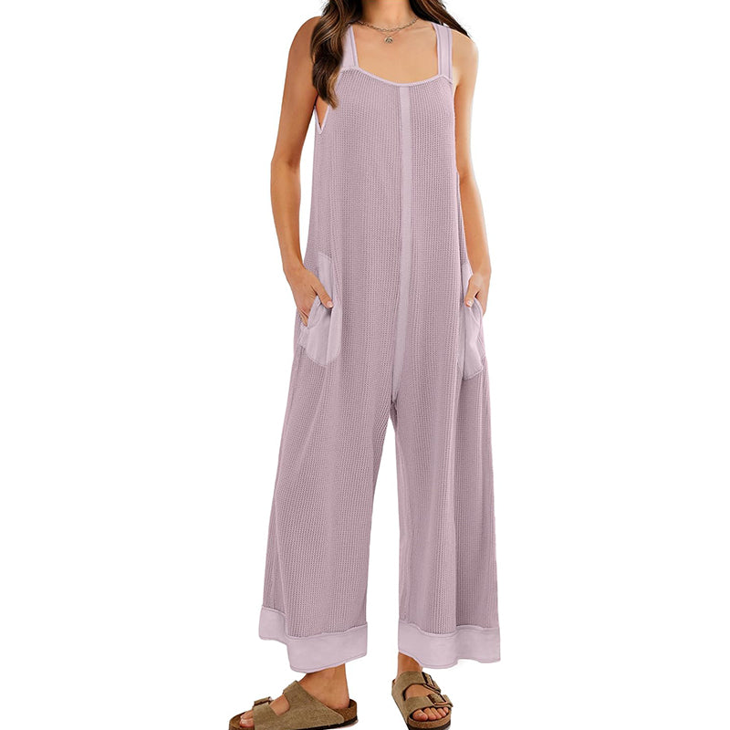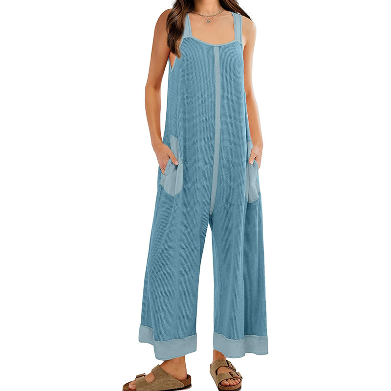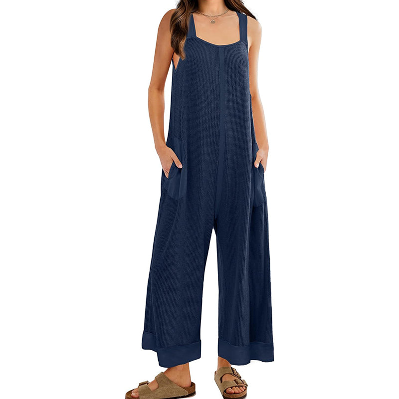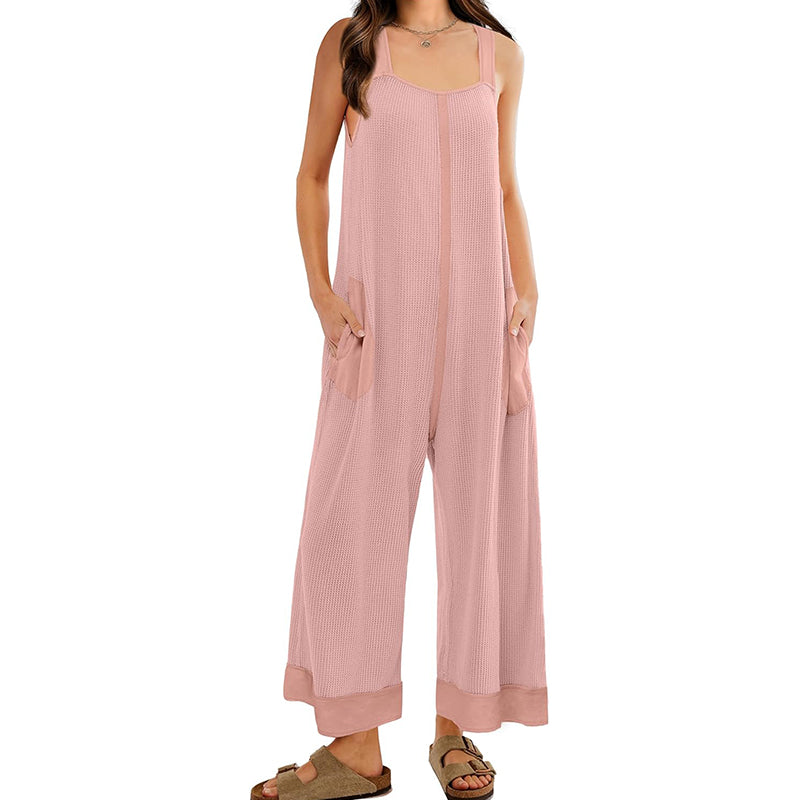 This is a fashionable jumpsuit, women's sleeveless romper,wide leg romper, side pockets, comfortable and casual wear, more in line with the atmosphere of summer.