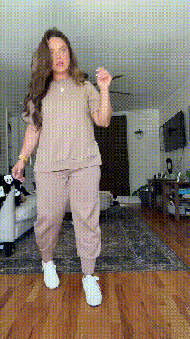 The sleeves are longer than the elbows, which looks stylish and cool, perfect for everyday wear. It also allows for better breathability and freedom of movement. The slit hem detail on the pullover adds a touch of uniqueness and fashion. The waistline of the tracksuit is located above the hips, giving women a flattering and slim look.