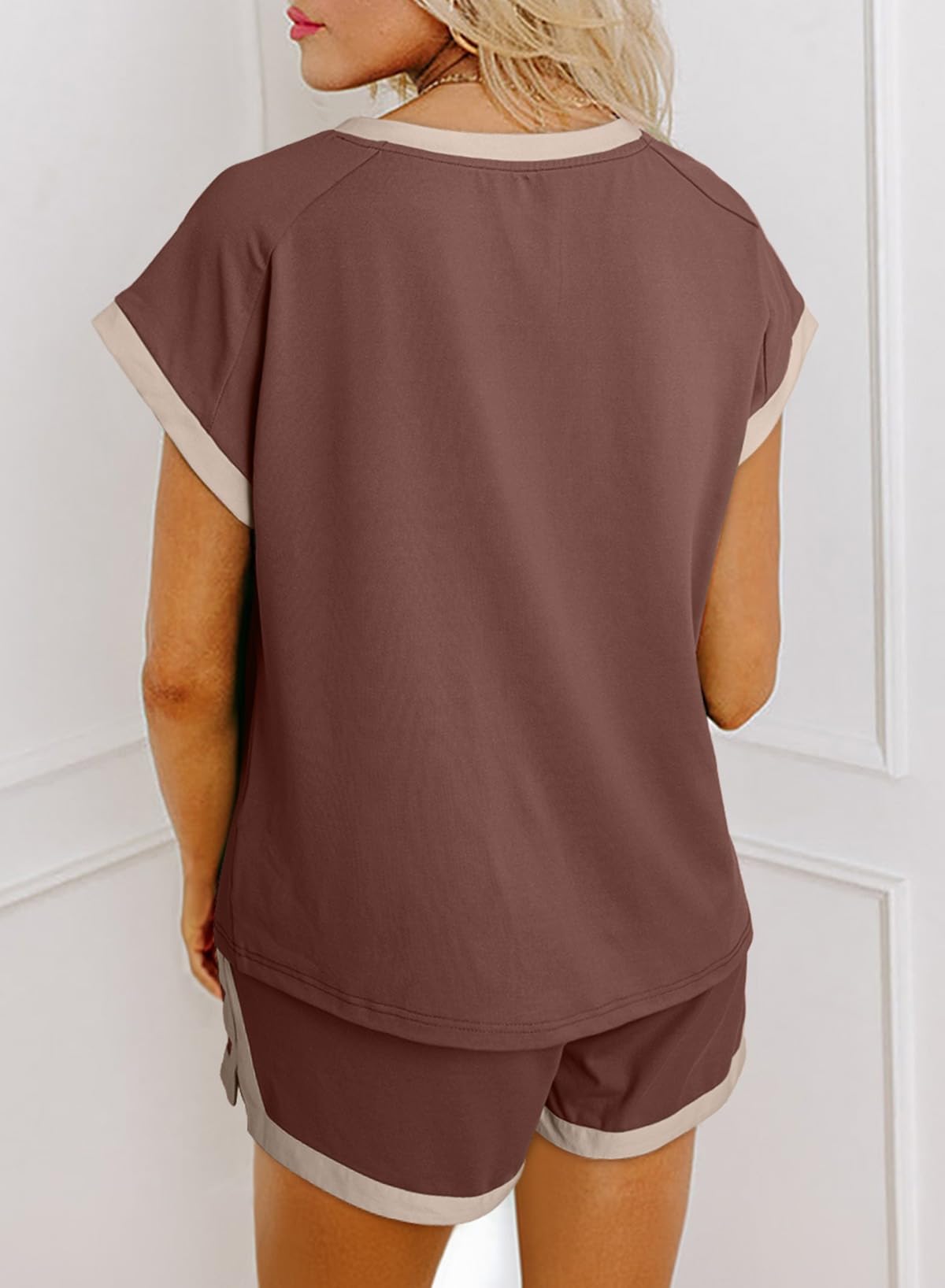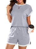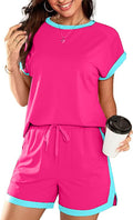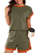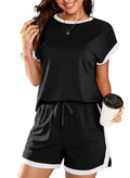 Women's 2 Piece Outfits Colorblock Short Sleeve Tops and Shorts Lounge Sets