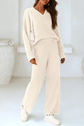 Women's 2 Piece Oversized V Neck Pullover Sweater Fuzzy Lounge Set
