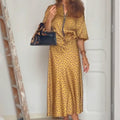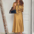Women's 2-Piece Polka Dot Outfit Zip-Up Top & Midi Skirt