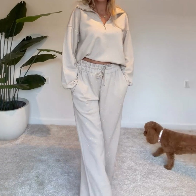 Women's 2-Piece Sweatsuits Half Zip Pullover & Wide Leg Pants