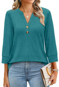 Womens 3/4 Sleeve Heley Button V neck Tops