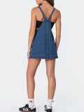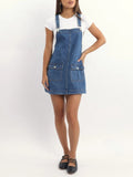 Women's Adjustable Straps Denim Overall Mini Dress with Pockets
