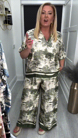 What a cute, unique and artistic print! Add a touch of cheerfulness and color to your wardrobe with our two-piece set! This vibrant ensemble is perfect for anyone who loves a sunny vibe. With its bold and jungle print, it radiates pure summer charm.