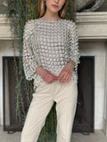 Women's Beaded Floral Cutout Long Sleeve Top Coverup