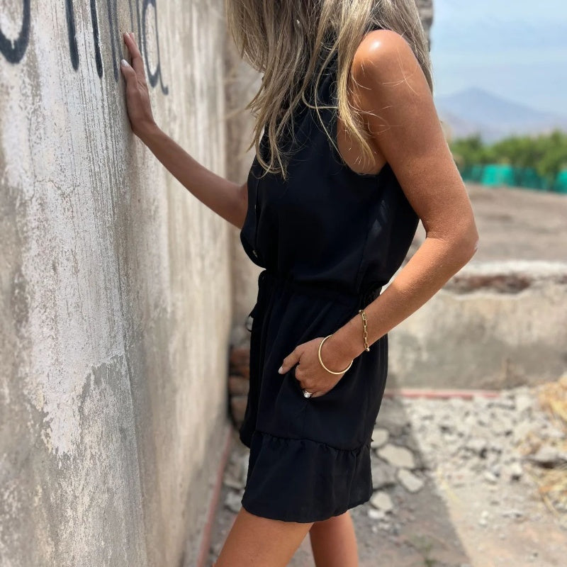 RUFFLE HEM DETAIL: The playful ruffle hem adds a feminine and fun flair to the romper, creating movement and texture for a chic and trendy look.