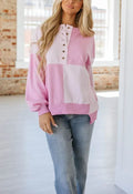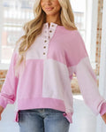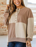Women's Button Colorblock Casual Sweatshirt