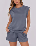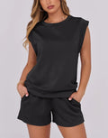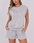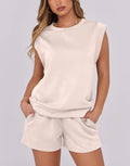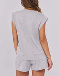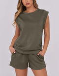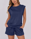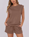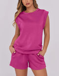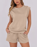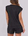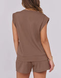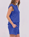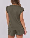 Women's Cap Sleeve Top And Drawstring Shorts 2 Piece Set