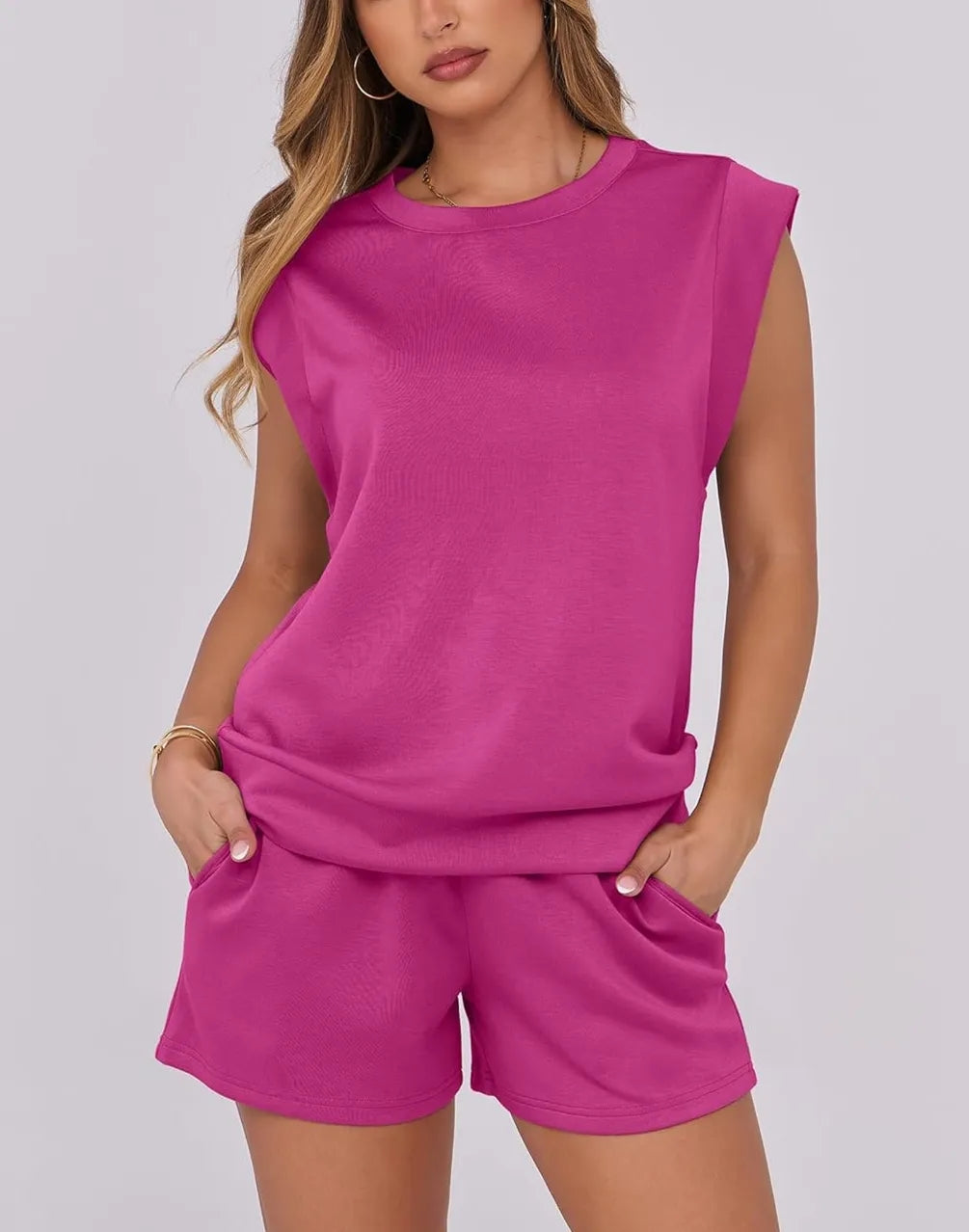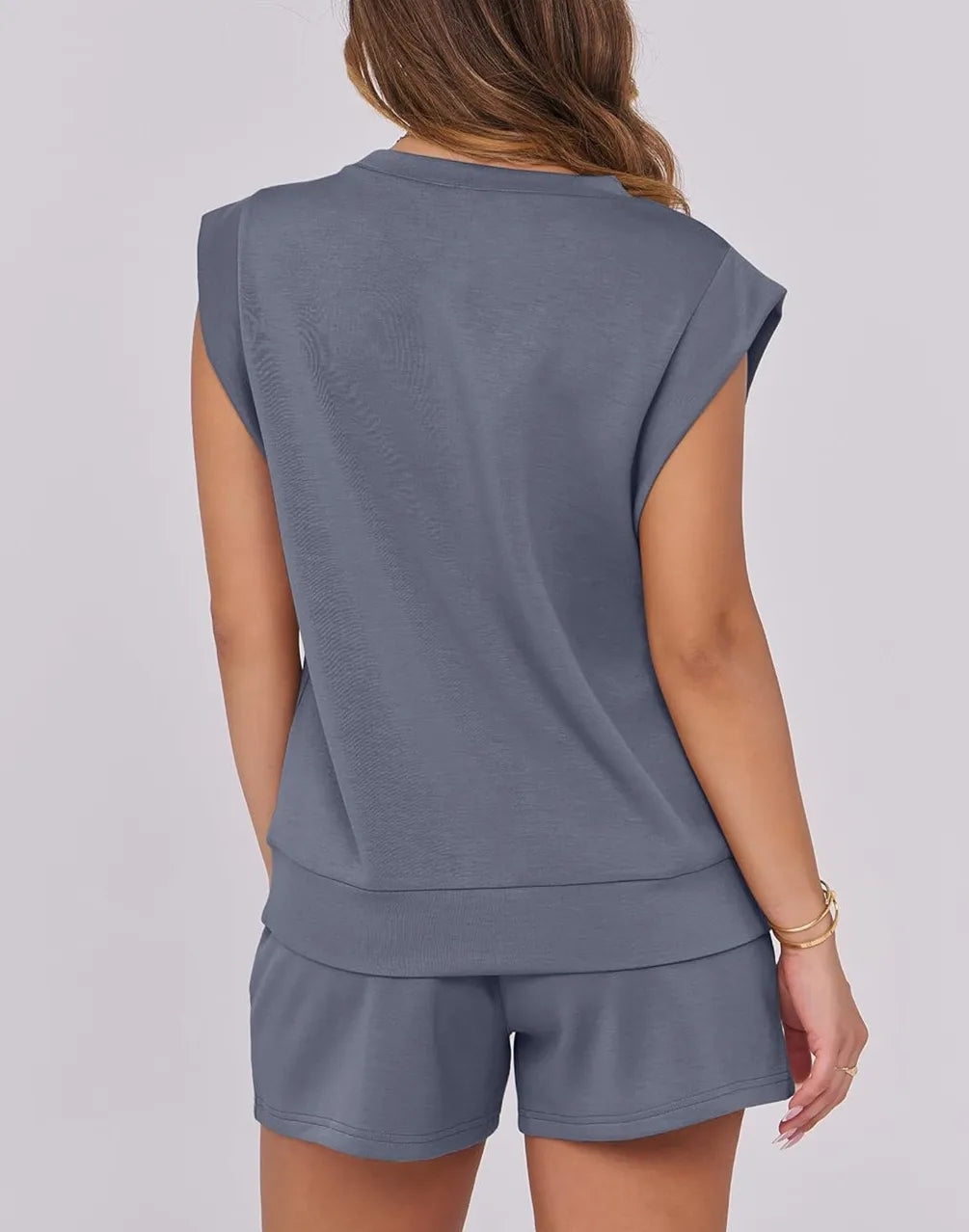 Keep you comfortable and stylish with our Women's Cap Sleeve Drawstring Shorts Set. This set is meticulously crafted to complement your summer wardrobe. Comprised of a cap sleeve top and drawstring shorts, this set offers versatility and an easy styling option.