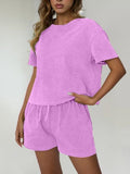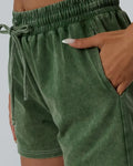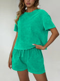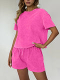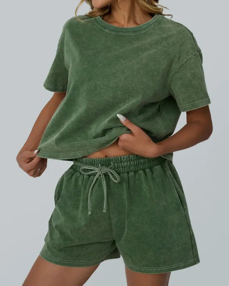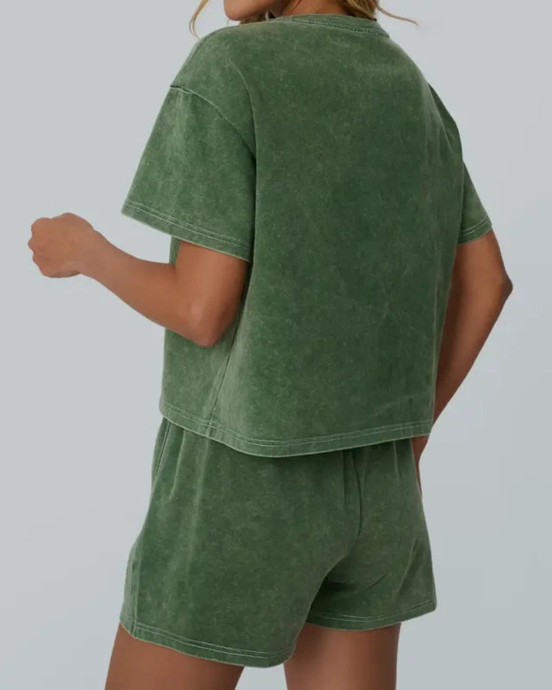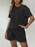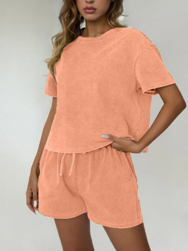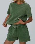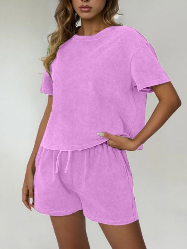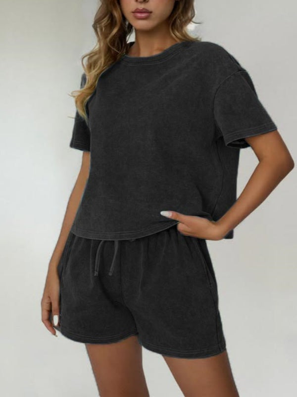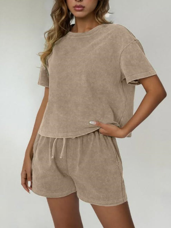 Women's Casual Acid Wash Short Sleeve Shorts Two Piece Set