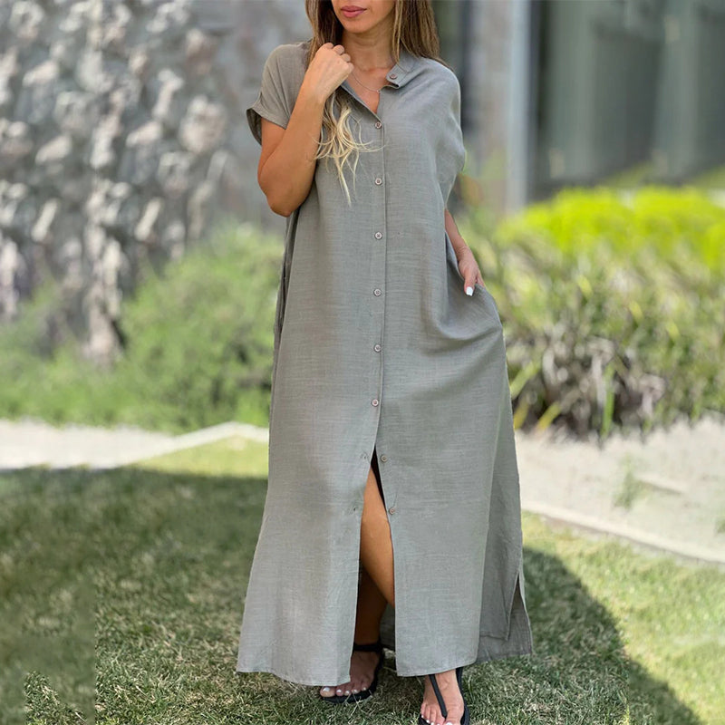 Women's Casual Button-Down Loose Side-Split Shirt Dress