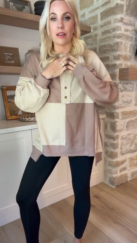Women's Casual Color Block Loose Button Henley Pullover Top
