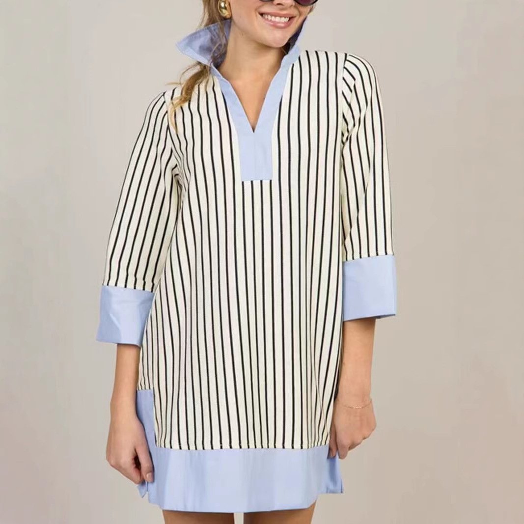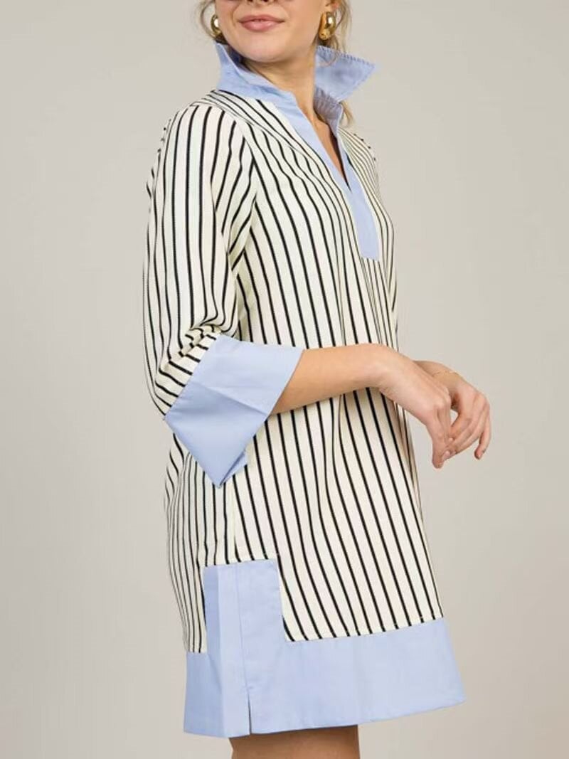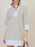Women's Casual Comfortable V-neck Striped Patchwork Dress