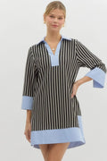Upgrade your casual wardrobe with the V-neck Striped Patchwork Dress! Chic stripes and a flattering V-neck make this dress your new go-to.