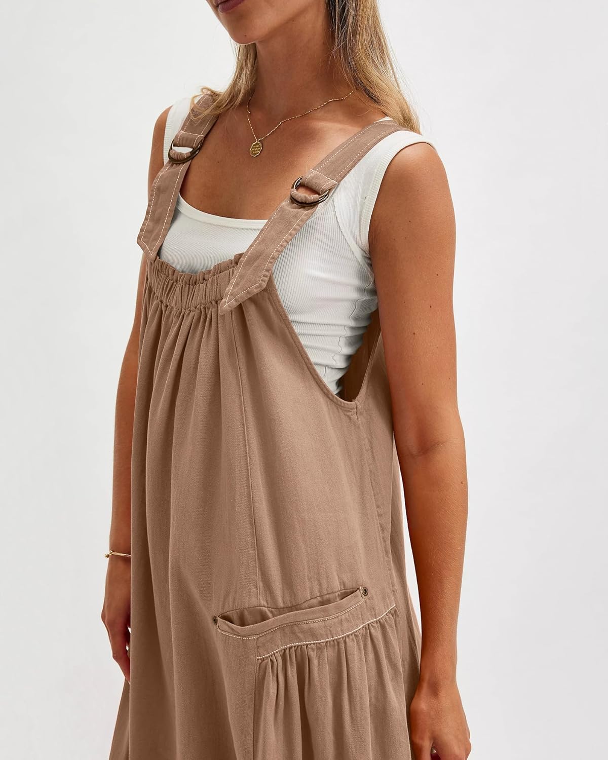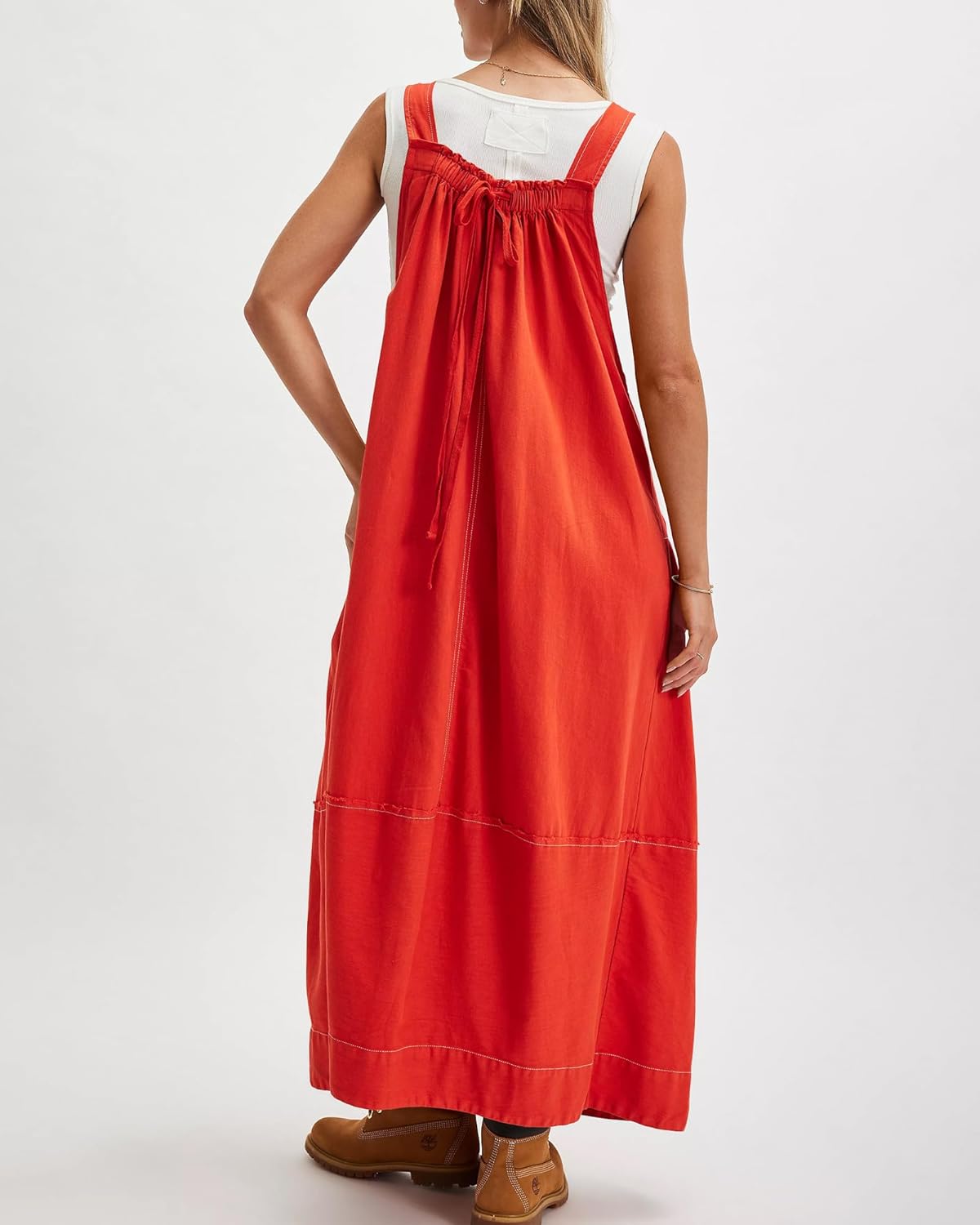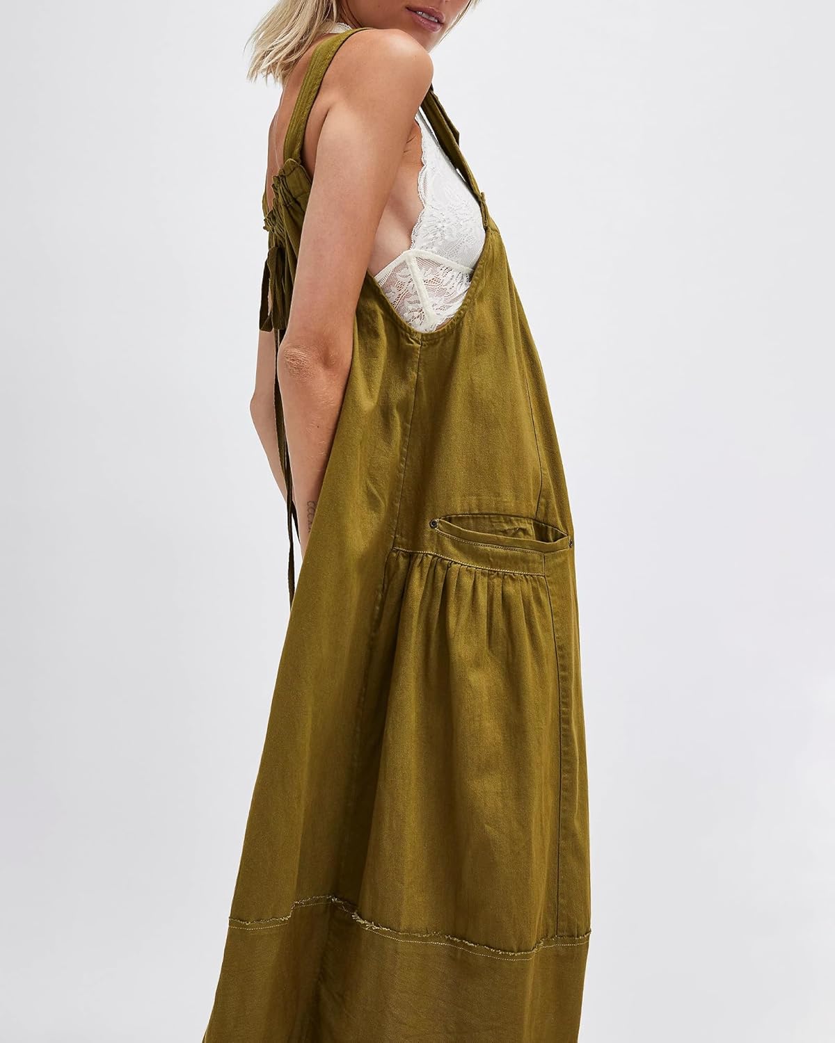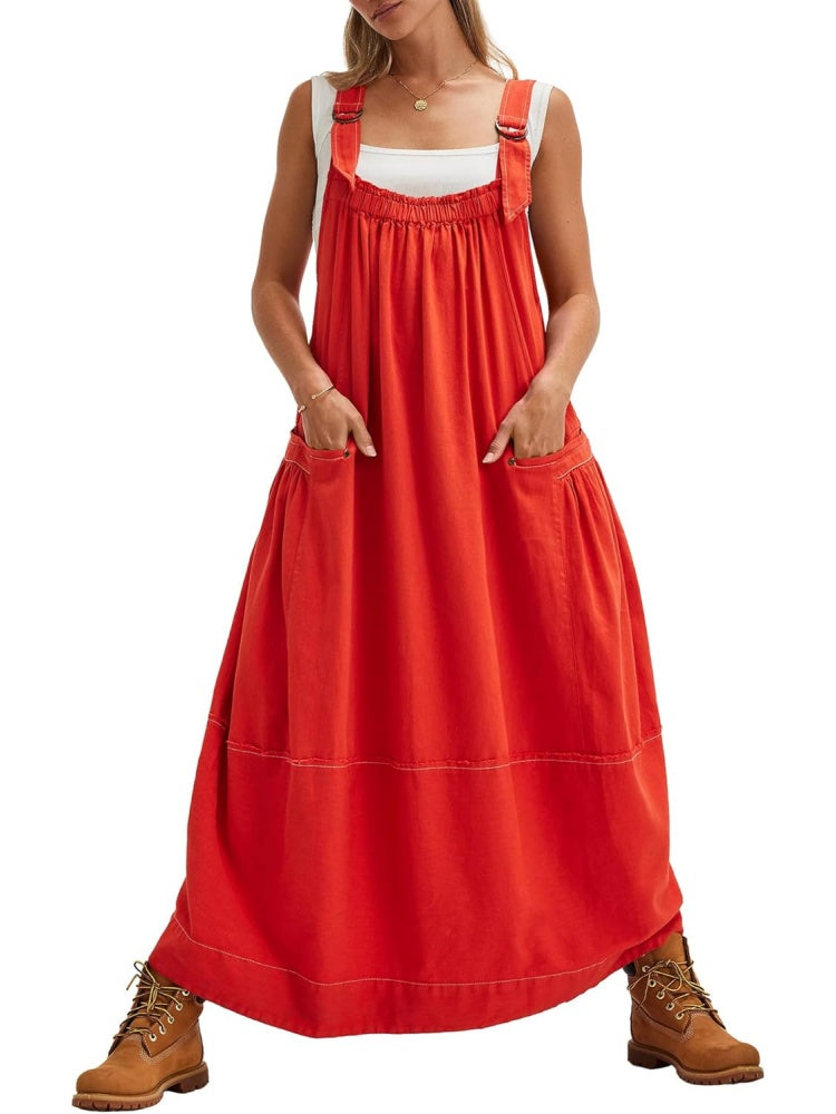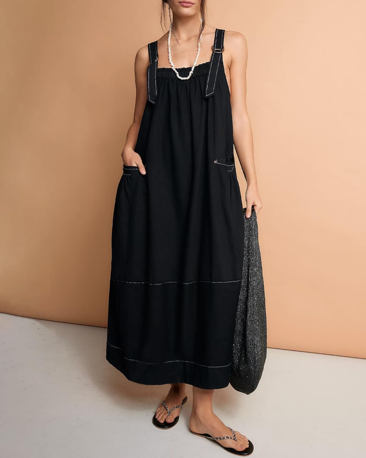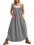 Women's Casual Loose Adjustable Straps Maxi Dress With Pockets
