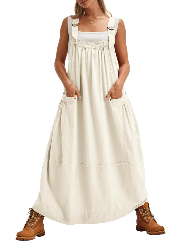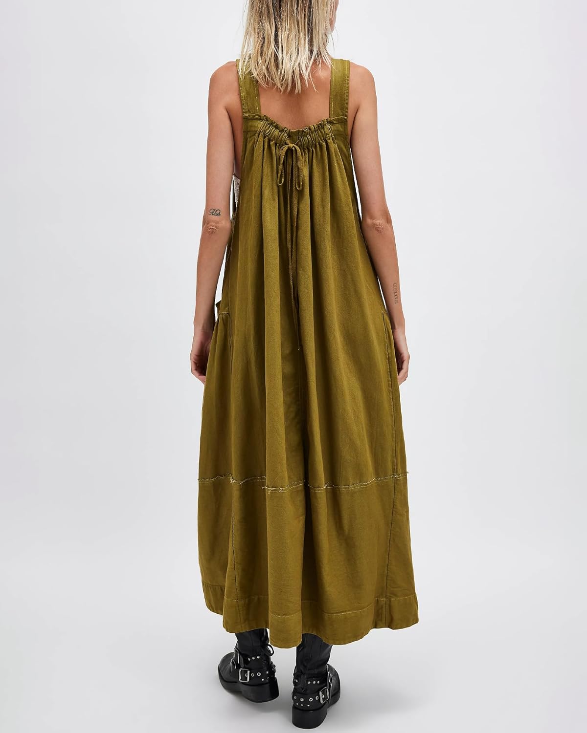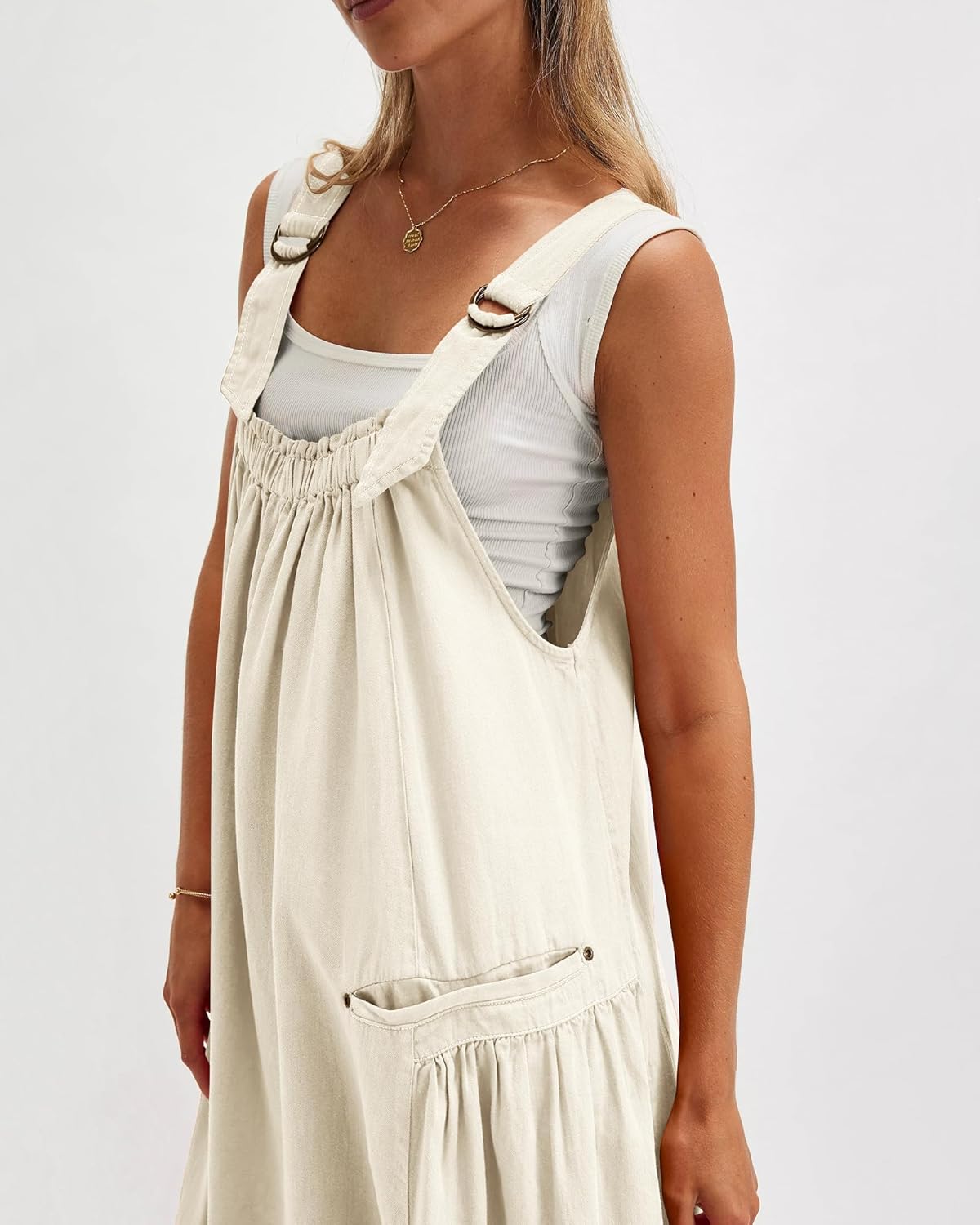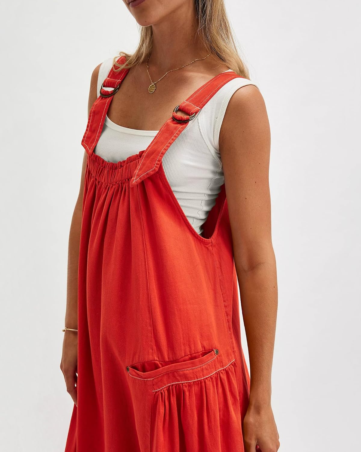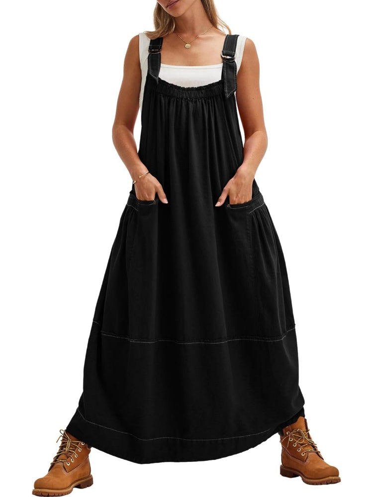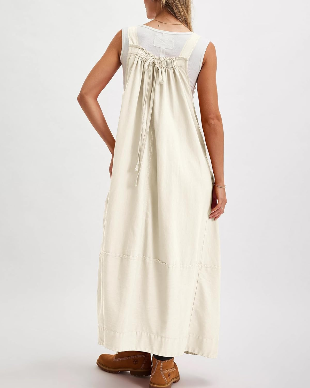 Women's Casual Loose Adjustable Straps Maxi Dress With Pockets