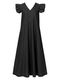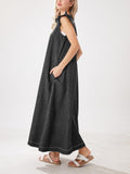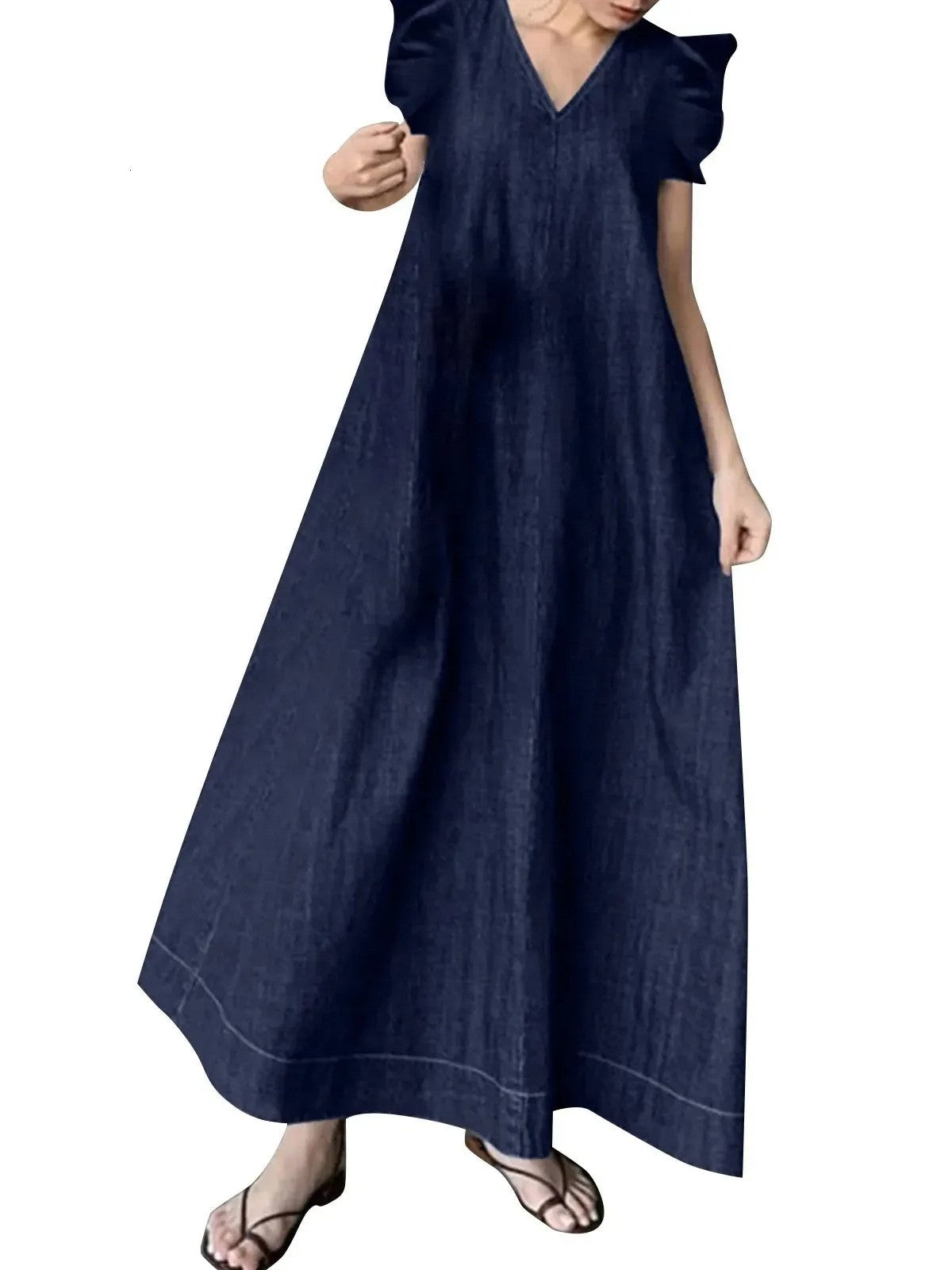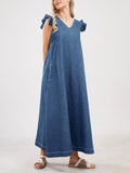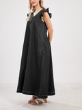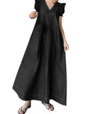 Women's Casual Loose Fit Ruffle Sleeveless V-Neck Denim Maxi Dress