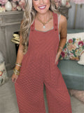 One-piece sleeveless jumpsuit with square neck, wide legs, two side pockets, solid color, stretchable trousers jumpsuit with a loose fit and casual style