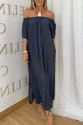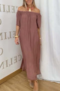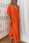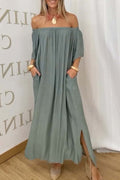 Women's Casual Off-Shoulder Solid Color Slit Dress