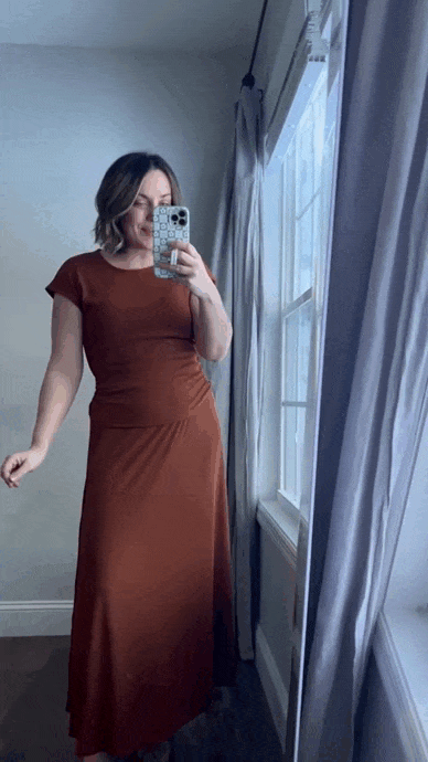 Feel the comfort and remarkable stretch of this fabric! And check out that flowing skirt!