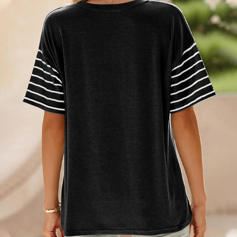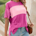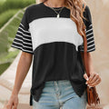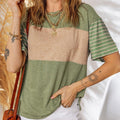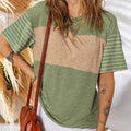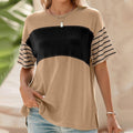 Women's Casual Round Neck Striped Color Clash Short Sleeve Top