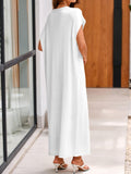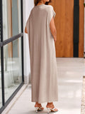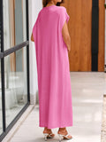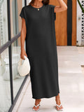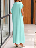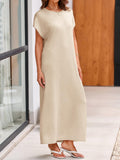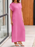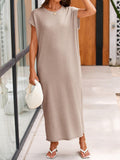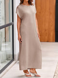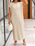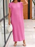 This women's summer knit dress features an oversized fit that provides comfort and ease of movement. The crewneck design and short sleeves make it ideal for warm weather. The loose fit and maxi length offer a relaxed and stylish look.