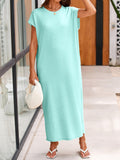 Women's Casual Short Sleeve Oversized Crewneck Loose Fit Knit Maxi Dresses