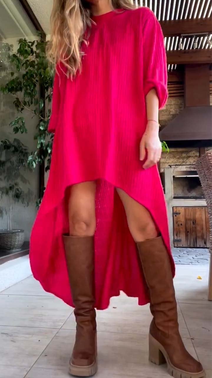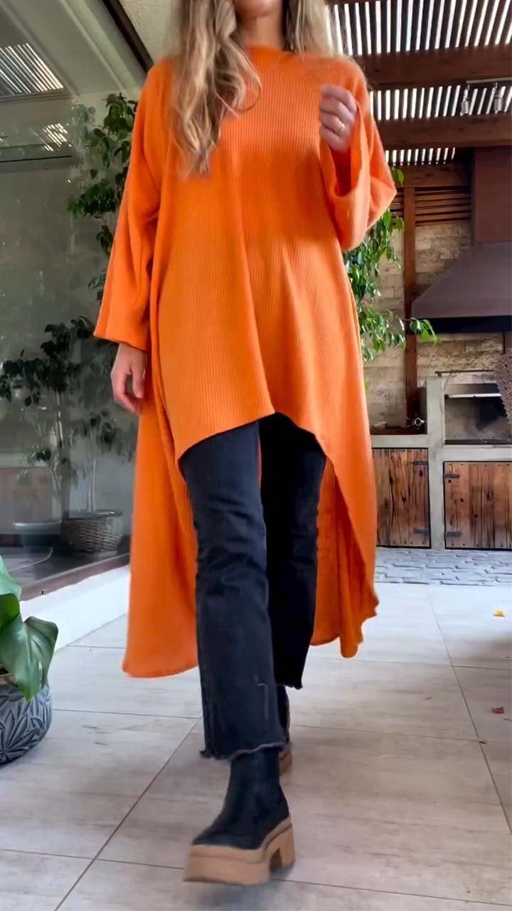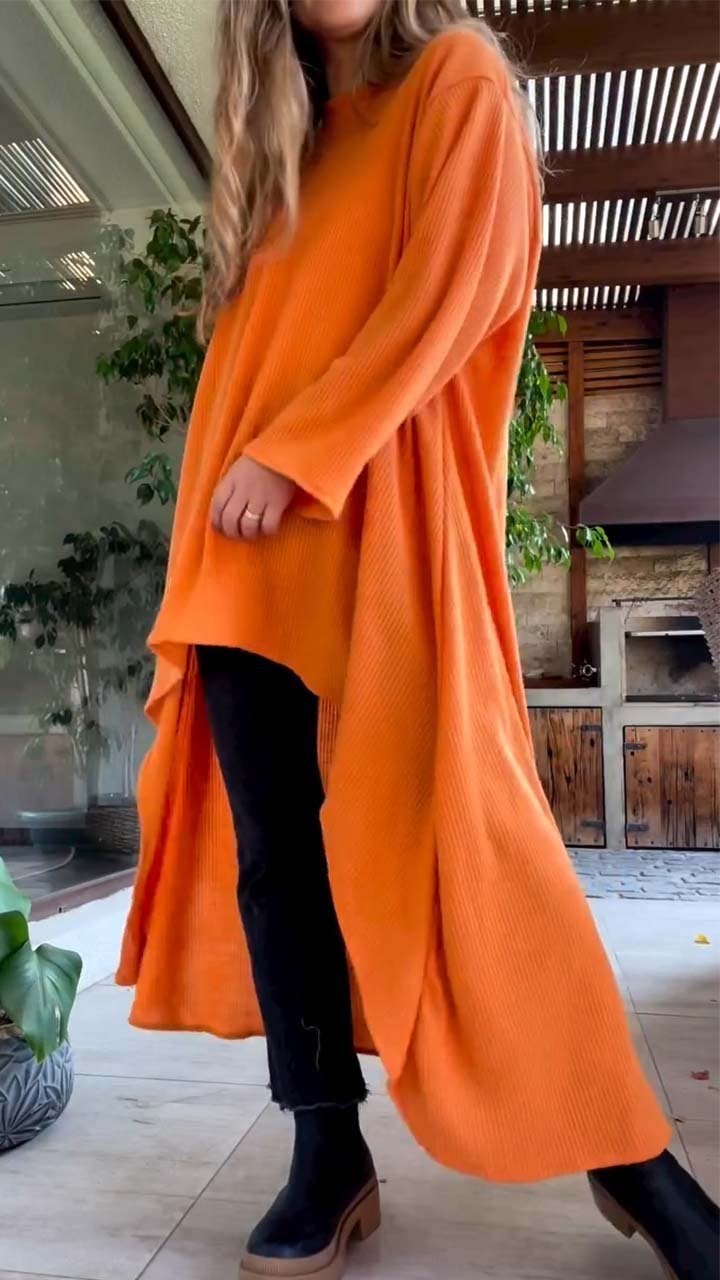 Women's Casual Solid Irregular Long Sleeve Top