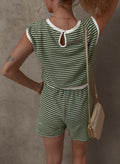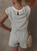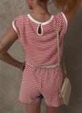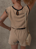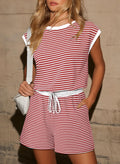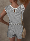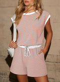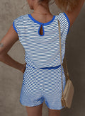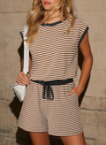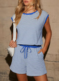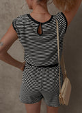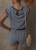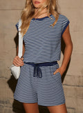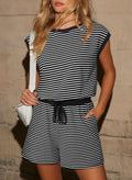 Women's Casual Striped Adjustable Drawstring Waist One-piece Rompers