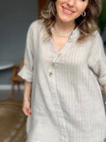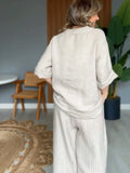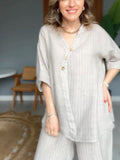 Step into comfort and style with our Women's Casual Striped Cotton Linen Set, where elegance meets effortless casualness.