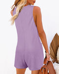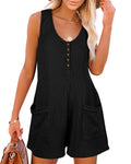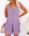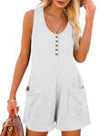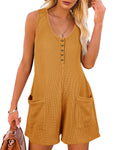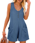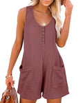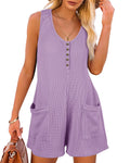 Womens Casual Waffle Button Front Sleeveless Rompers with Pockets