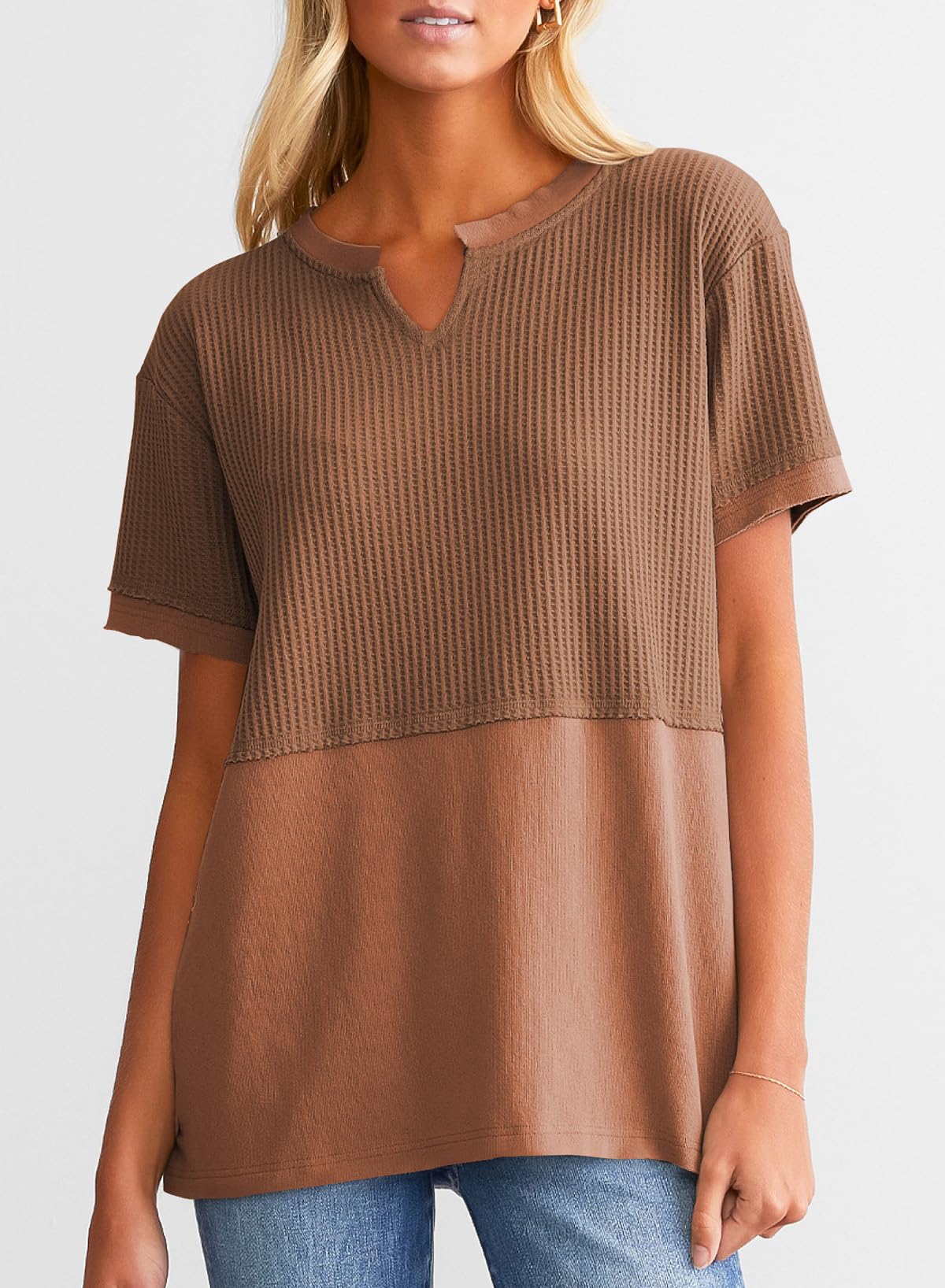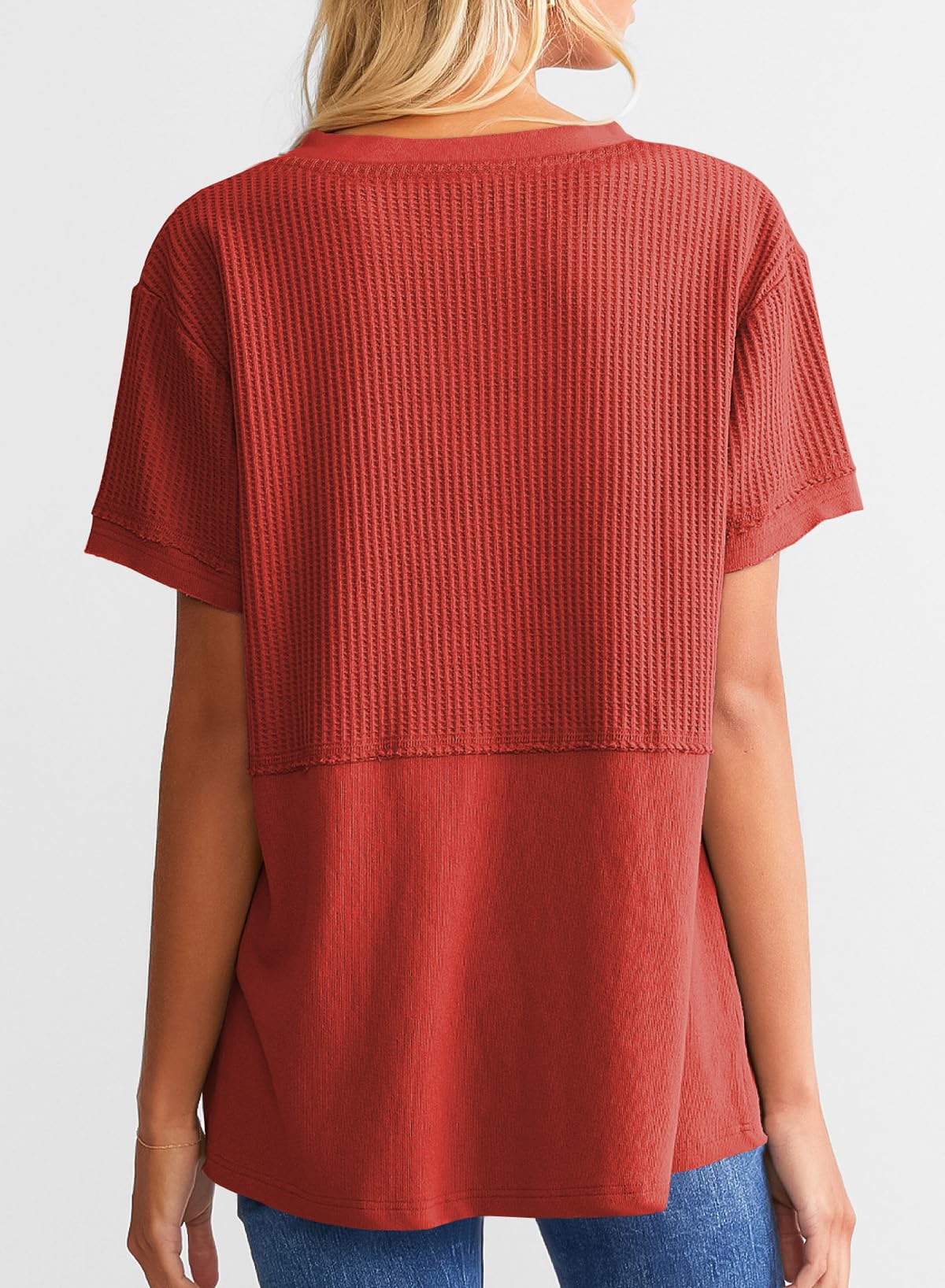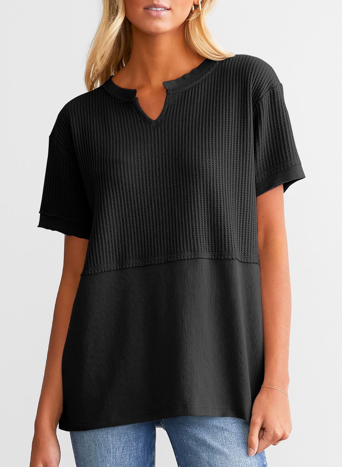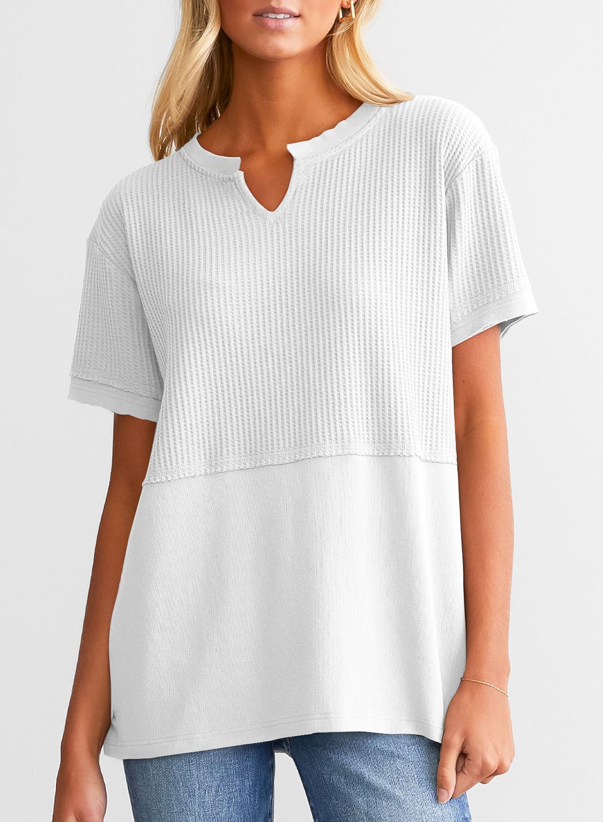 This waffle tunic top is breathable and comfortable, easy to wash and wear. It can be matched with jeans, shorts, or skirts. The chic basic style can create a variety of fashionable matches. This T-shirt is definitely a must-have item in your spring and summer wardrobe.