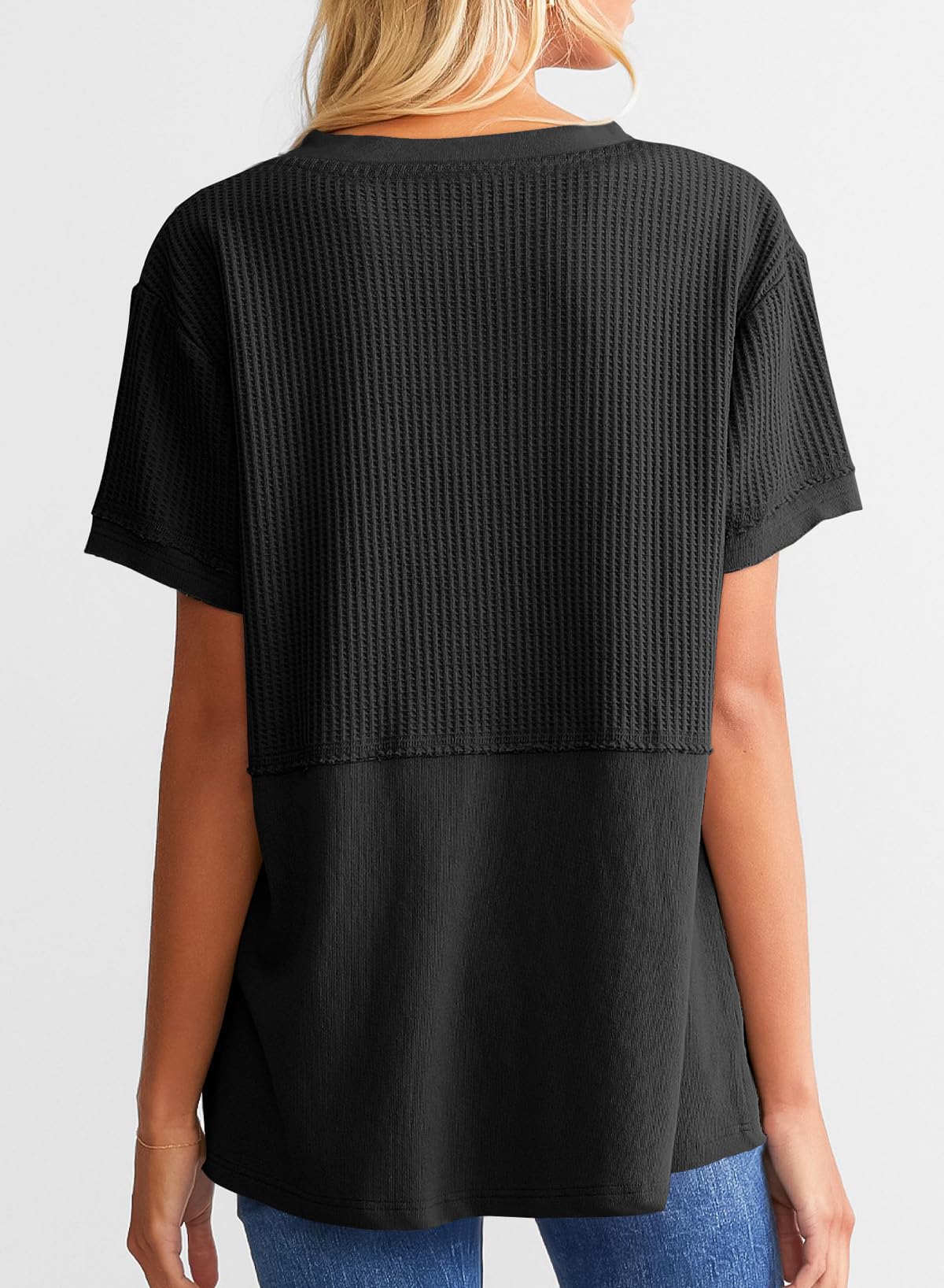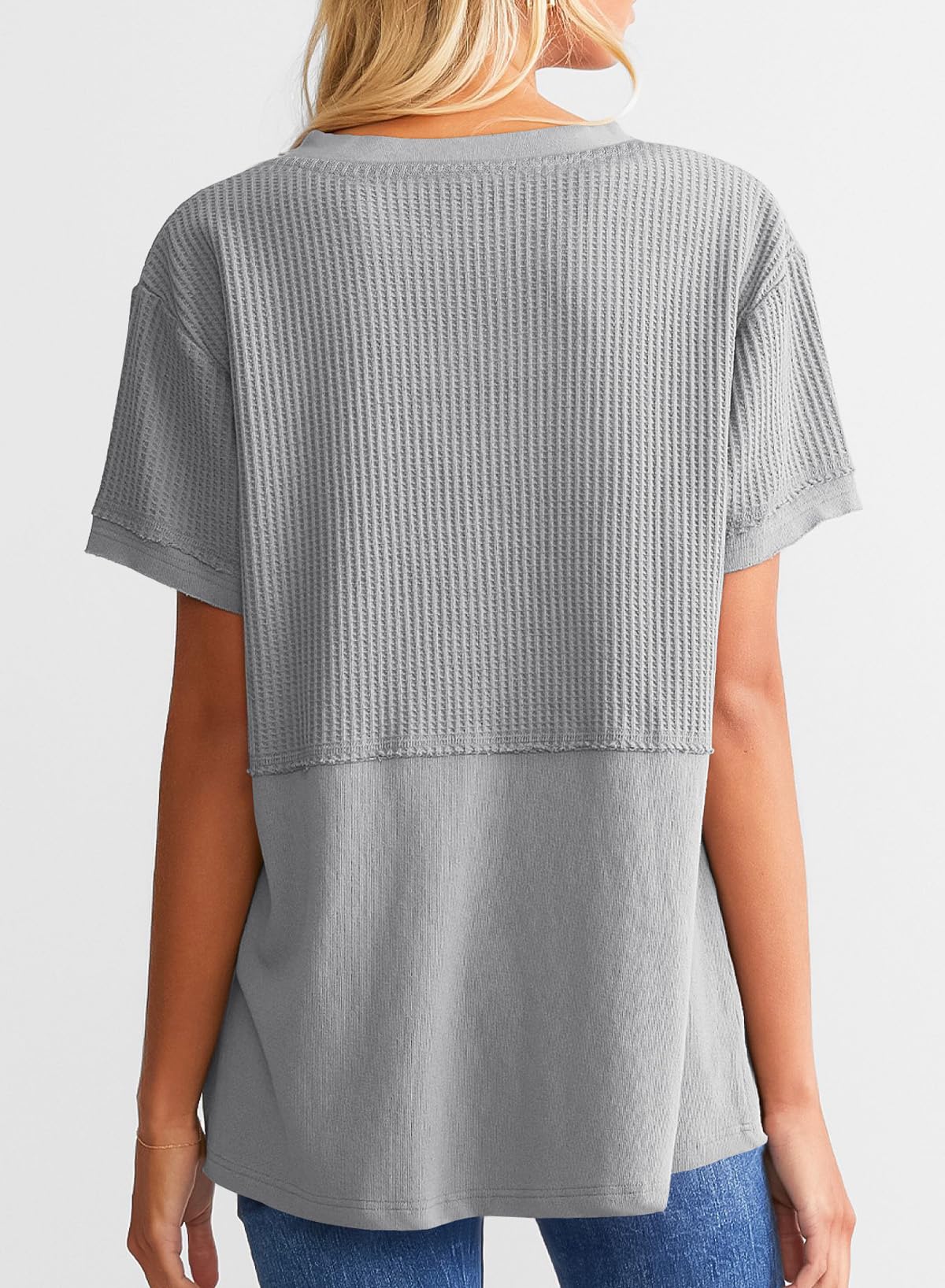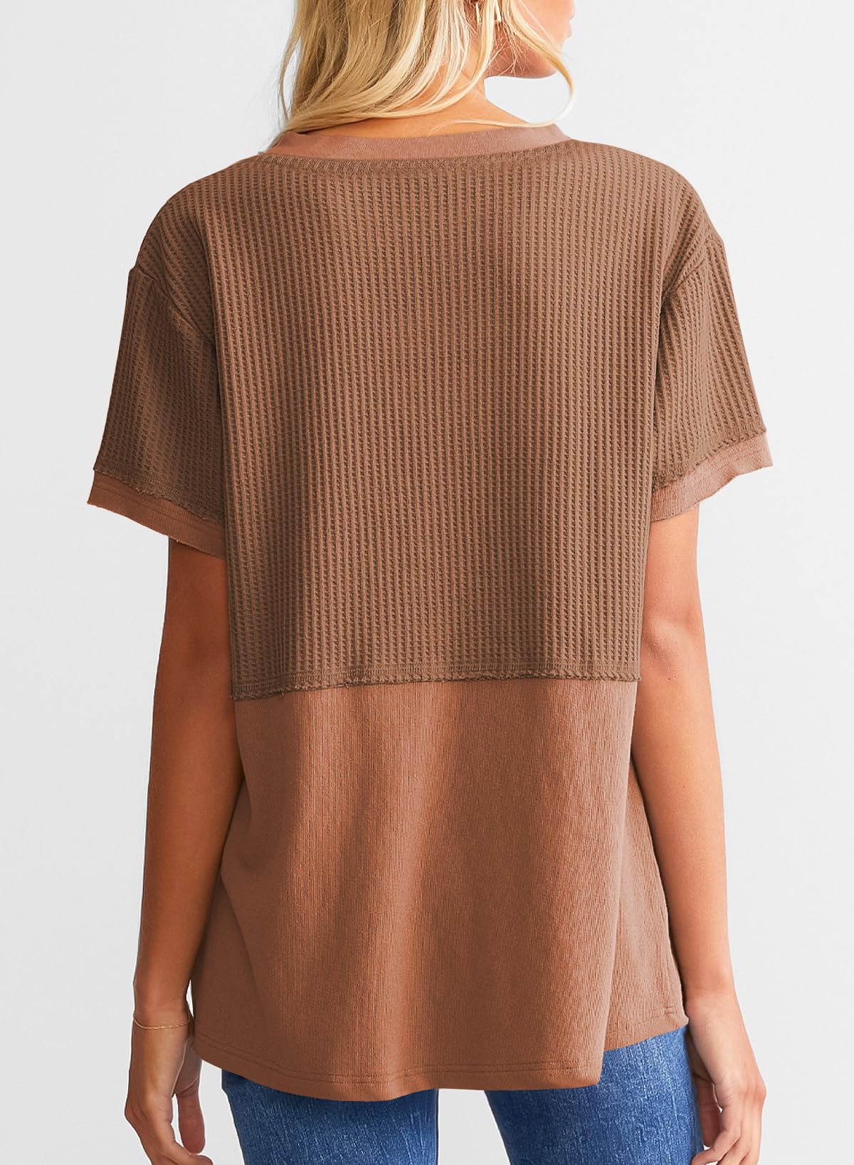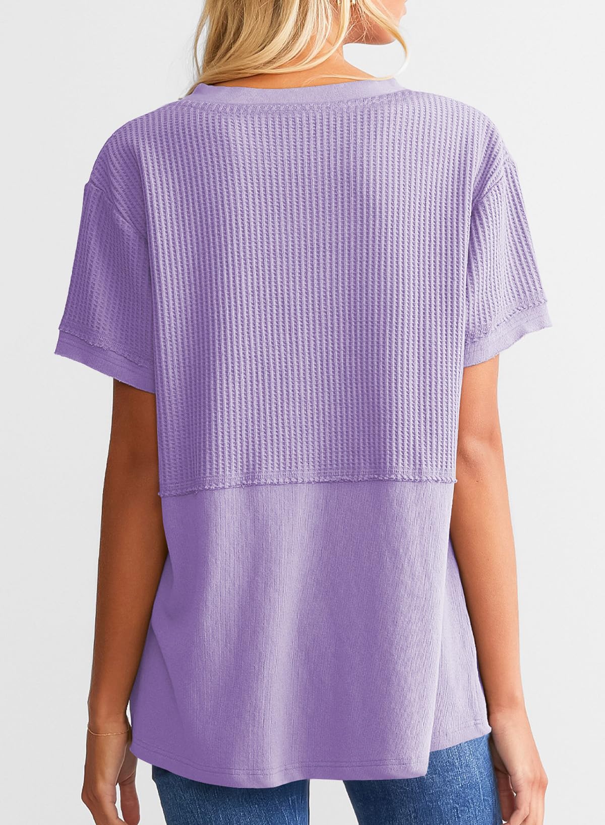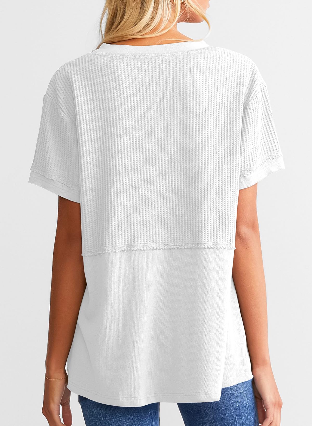 This waffle tunic top is breathable and comfortable, easy to wash and wear. It can be matched with jeans, shorts, or skirts. The chic basic style can create a variety of fashionable matches. This T-shirt is definitely a must-have item in your spring and summer wardrobe.
