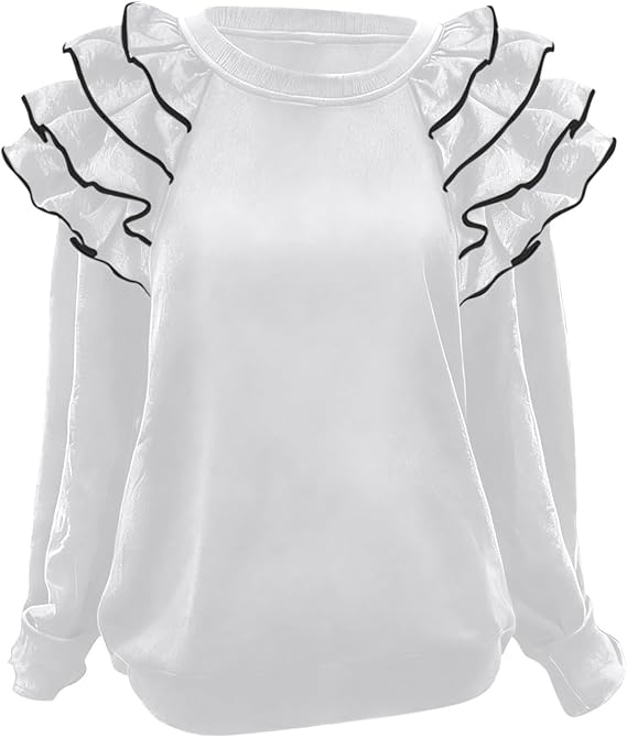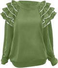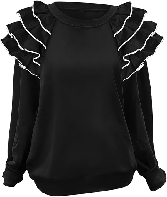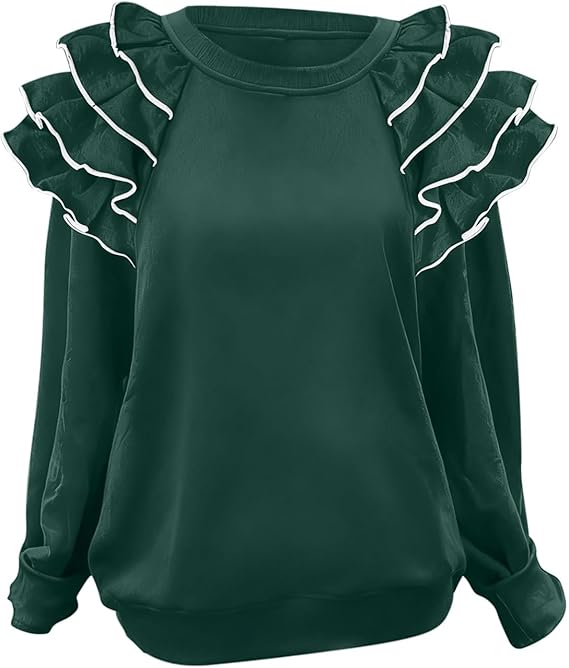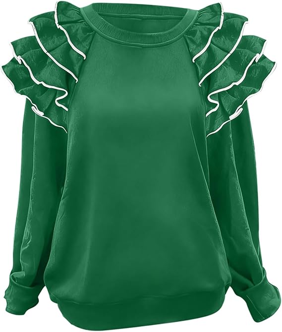 Designed for the holiday season, this women's sweatshirt combines contemporary style with relaxed comfort. The elongated sleeves feature carefully constructed ruffles that create a refined, feminine silhouette. A classic round neckline offers timeless appeal, while the loose-fitting cut allows for ease of movement.