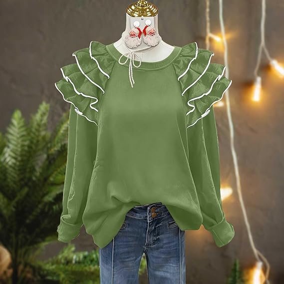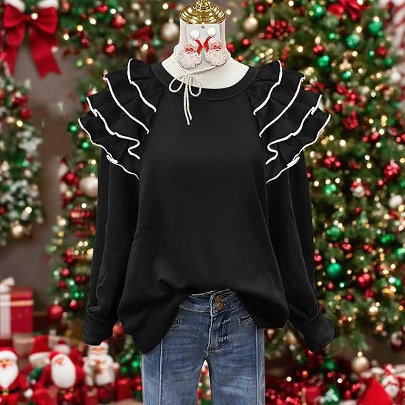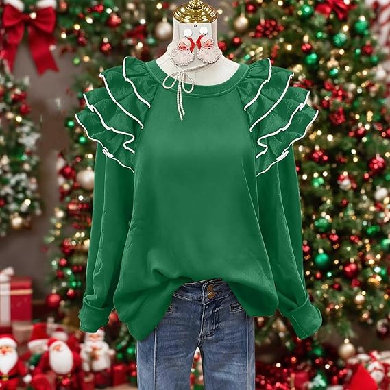 Women's Christmas Sweatshirt with Ruffled Sleeves