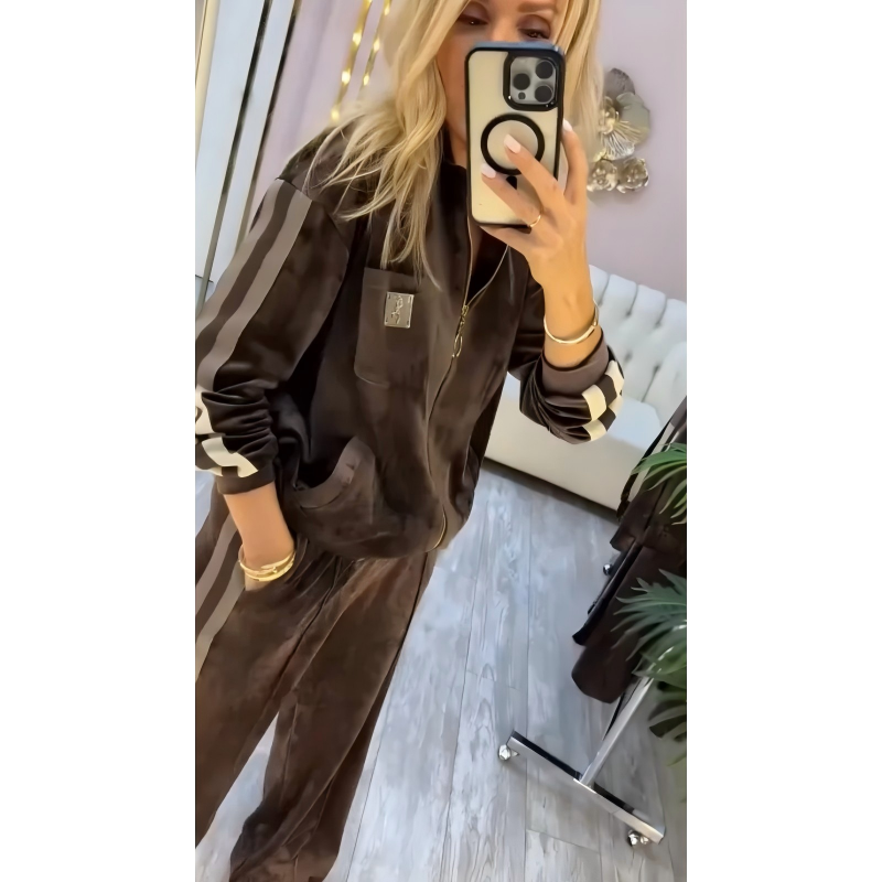 Women's Corduroy Tracksuit Set with Stripe Detail