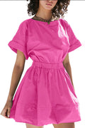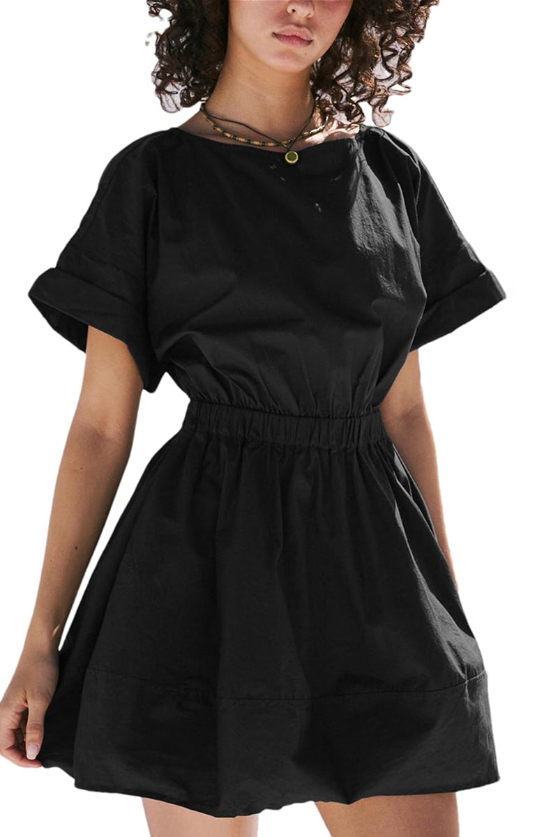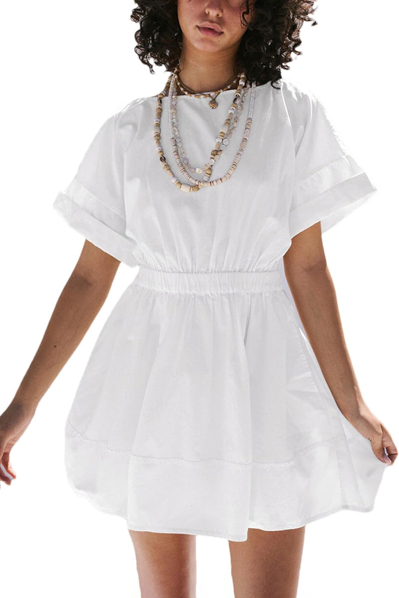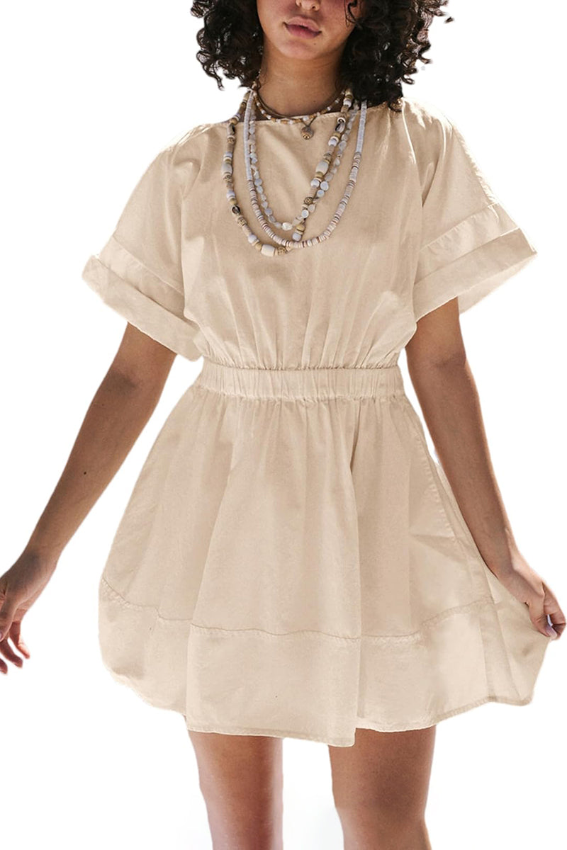 Women's Crew Neck Short Sleeve Casual Beach Sunshine Cotton Mini Dress
