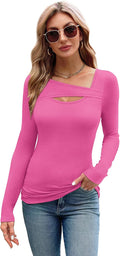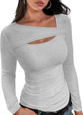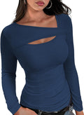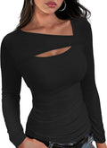 Womens Cutout Long Sleeve Shirts Ribbed Slim Fit Tops