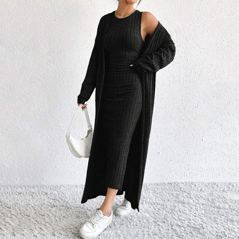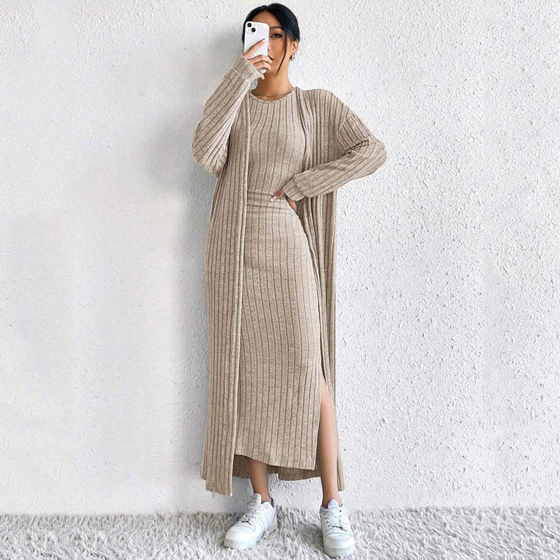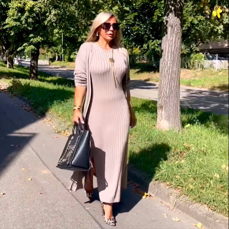 Women's Elegant Slim Knit Dress and Cardigan Set