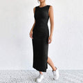 SLIM-FIT DRESS WITH SIDE SLIT: The dress is designed to hug your curves, creating a flattering silhouette that enhances your natural shape. The side slit adds a touch of elegance and allows for easy movement.