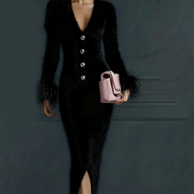 ACCENTED CUFFS - The long sleeves are finished with distinctive, textured trim at the cuffs, adding a touch of high-fashion drama and drawing attention to your gestures for a glamorous, complete look.