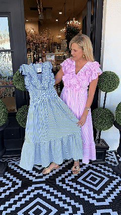 This Women's Elegant V-neck Striped Midi Dress features delicate ruffle details, offering a sophisticated and flattering silhouette. Perfect for both casual and formal occasions, it combines timeless style with modern elegance.