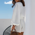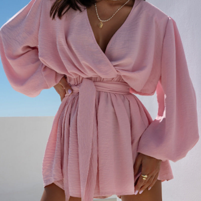 Women's Elegant V-Neck Waist Tie Long Sleeve Romper