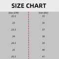 All sizes are reflected in centimeters, referring to foot length, not the shoe size. This allows you to measure your foot and select the size that best fits you.