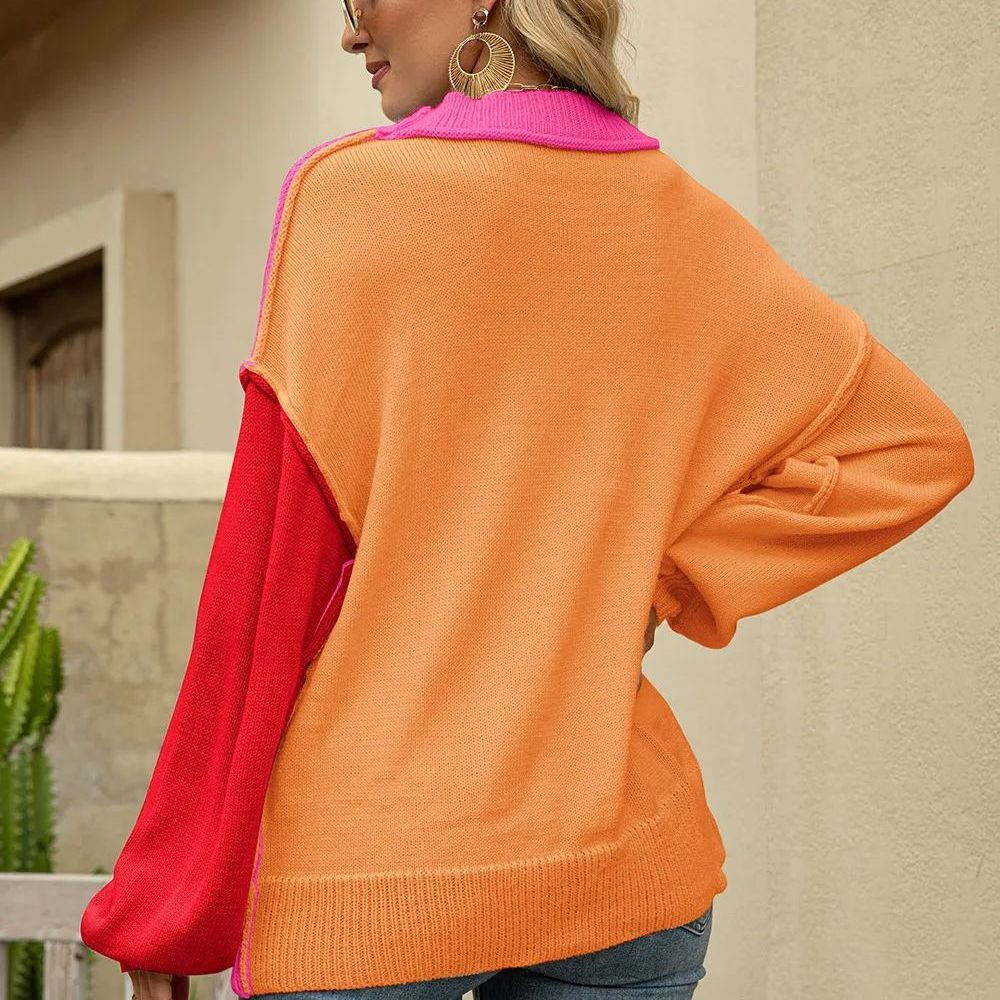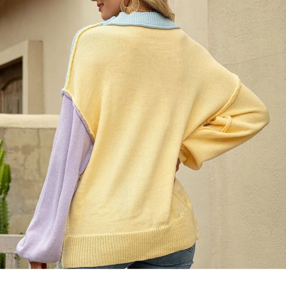 Women's Fall Casual Sweater Crewneck Ribbed Knit Pullover Tops