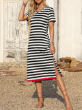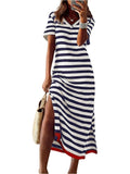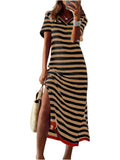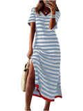 Womens Fashion Short Sleeve Striped Maxi Dress