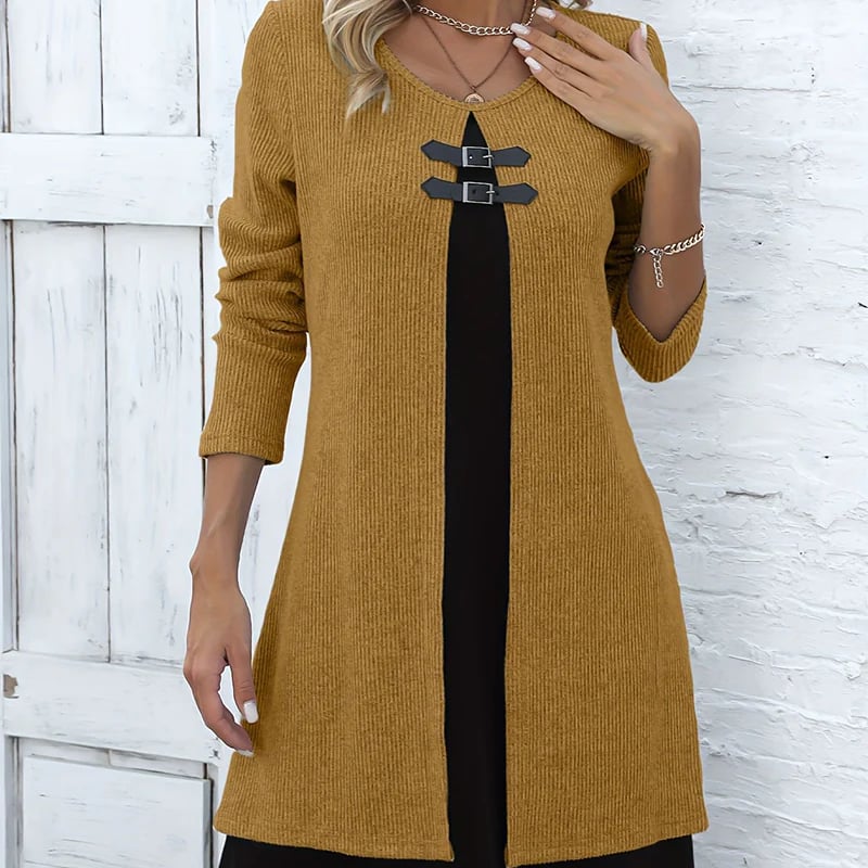 FAUX TWO-PIECE DESIGN - Get a stylish, layered look without the bulk or hassle of multiple garments. It provides a coordinated and chic outfit in one simple, easy-to-wear piece.