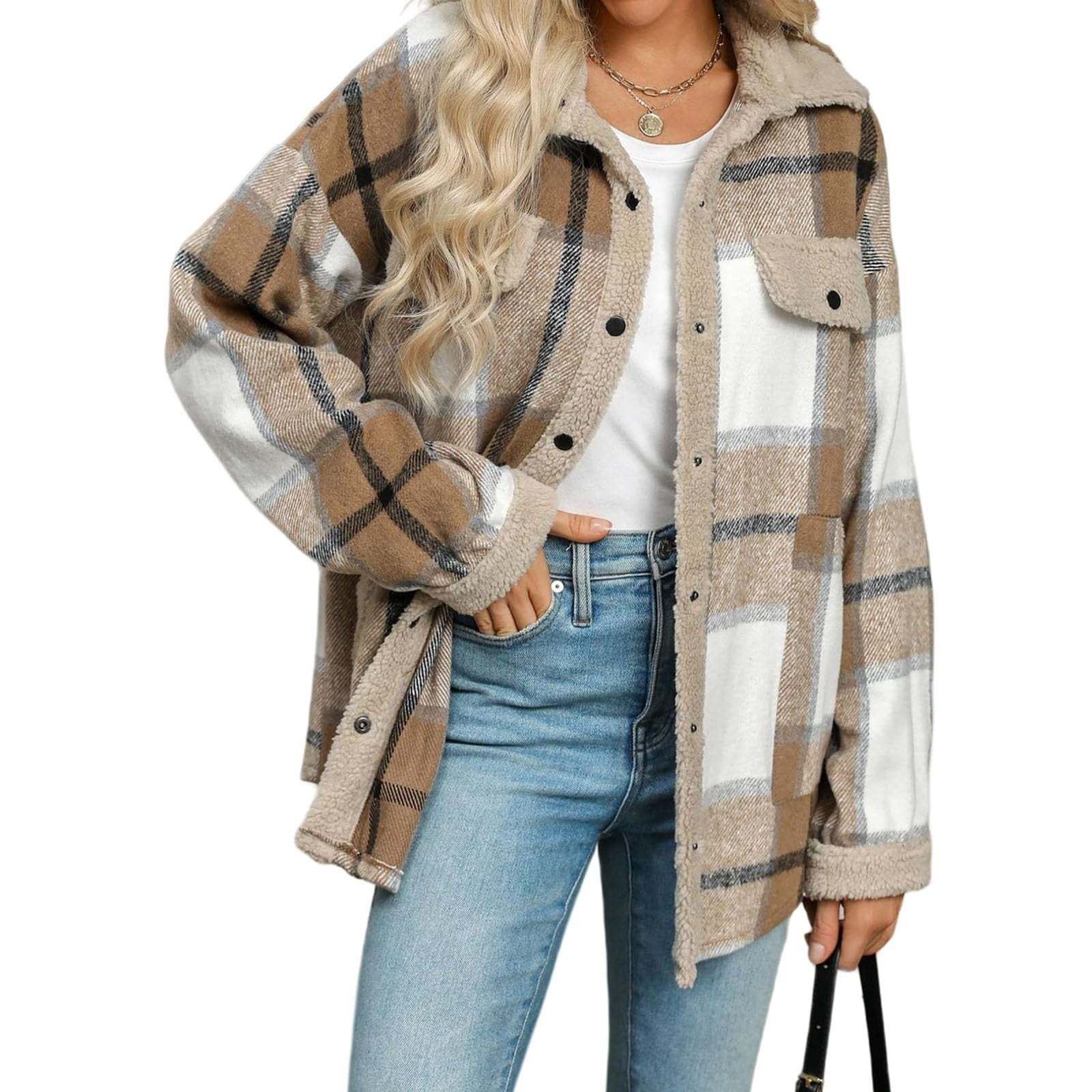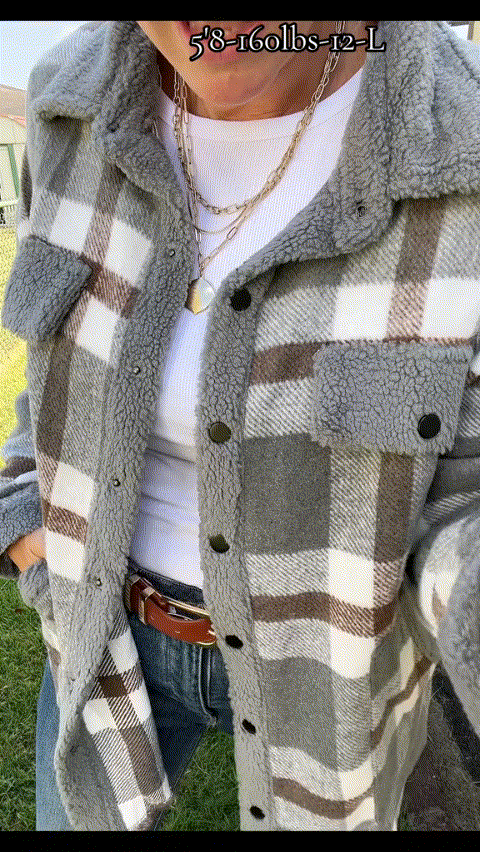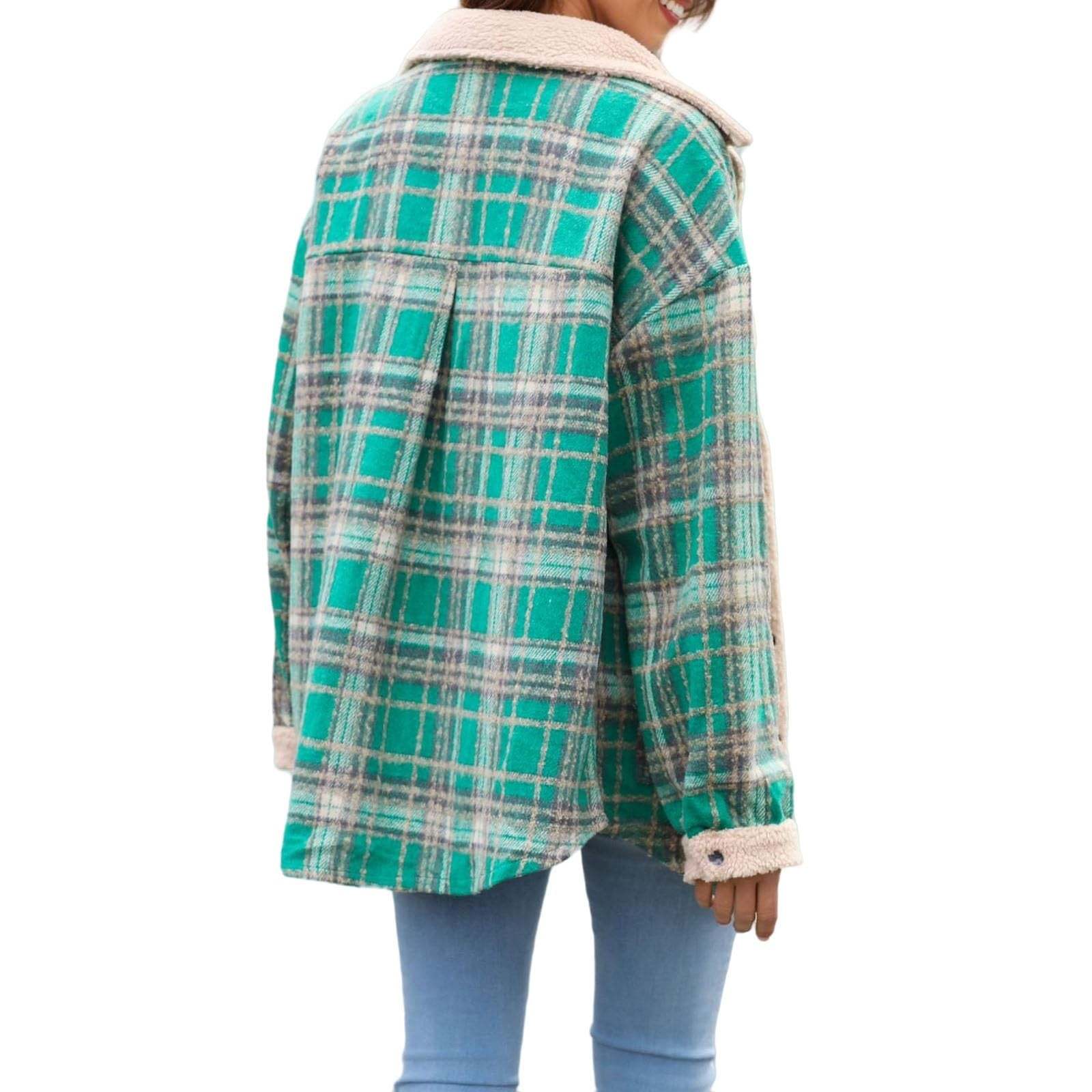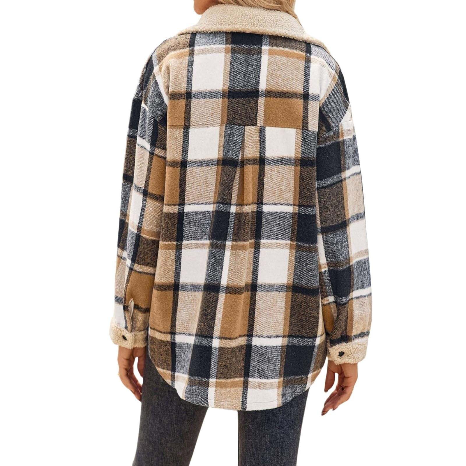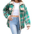 Women's Fleece Flannel Button Down Plaid Shacket Jacket