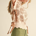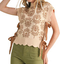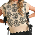 Women's Floral Side Tie Cap Sleeve Crew Neck Knit Vest